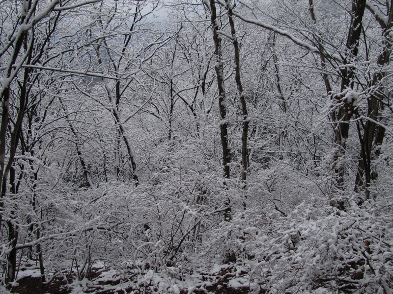 これは雪景色。オリジナル写真を拡大して見ると細い枝にじつにていねいに雪が盛られています。
