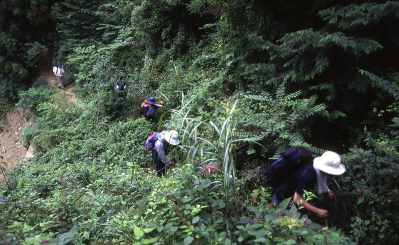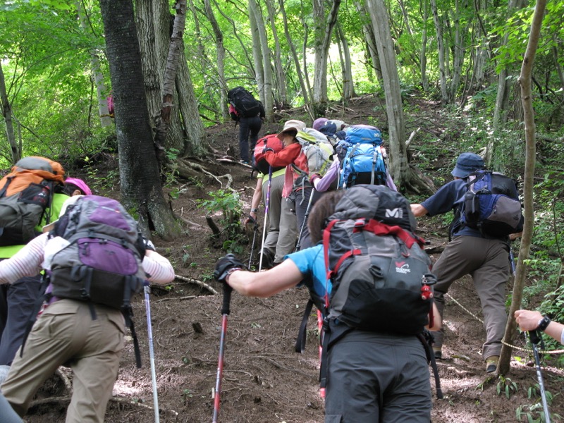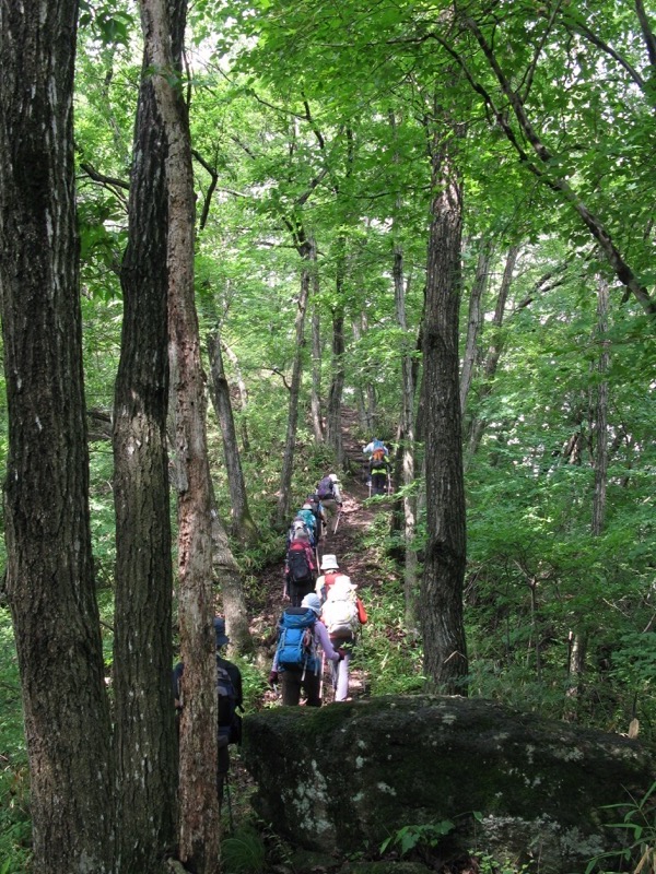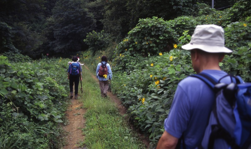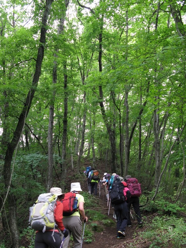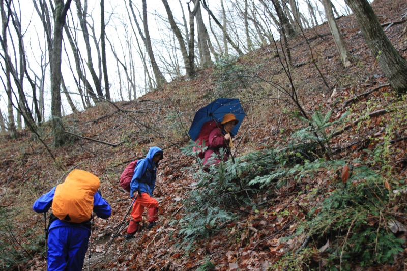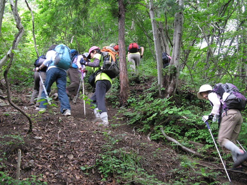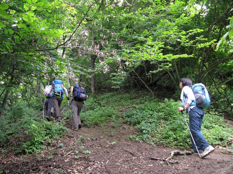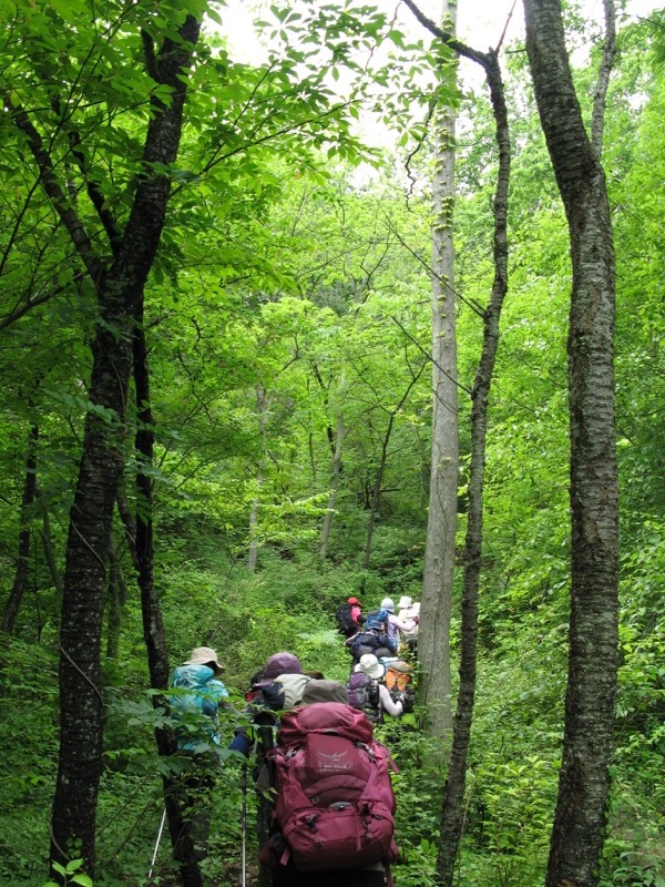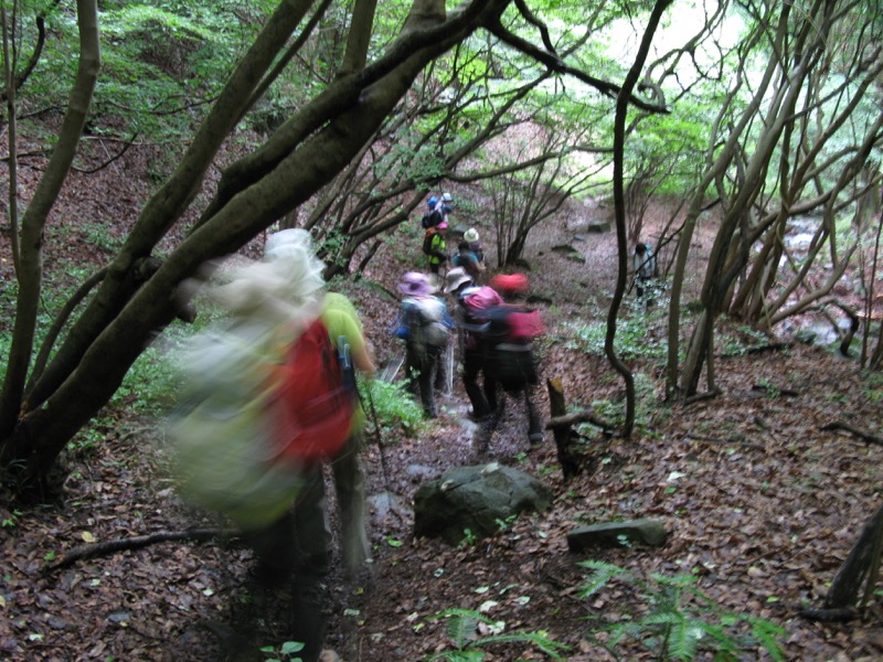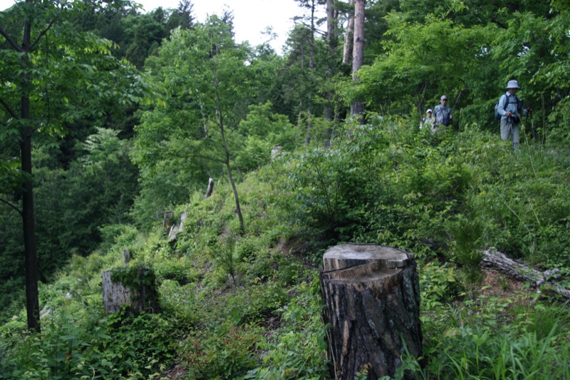 シラノサワ・コースの道は、大きく回り込んでから急登になります。