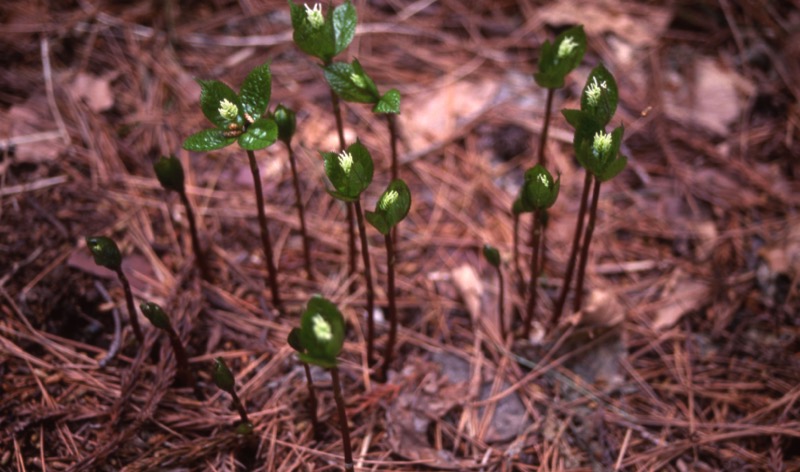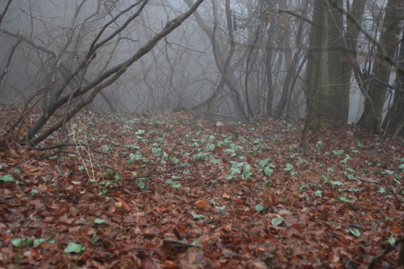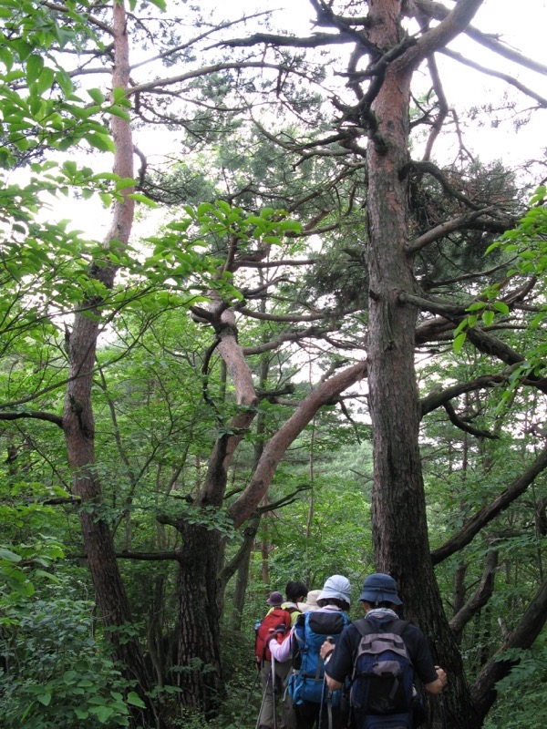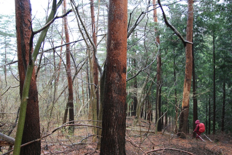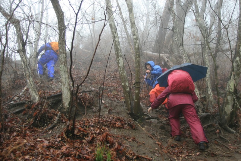 気分としては雪山の樹林帯。冬の北八ヶ岳などではこういう気分の縦走を楽しめます。