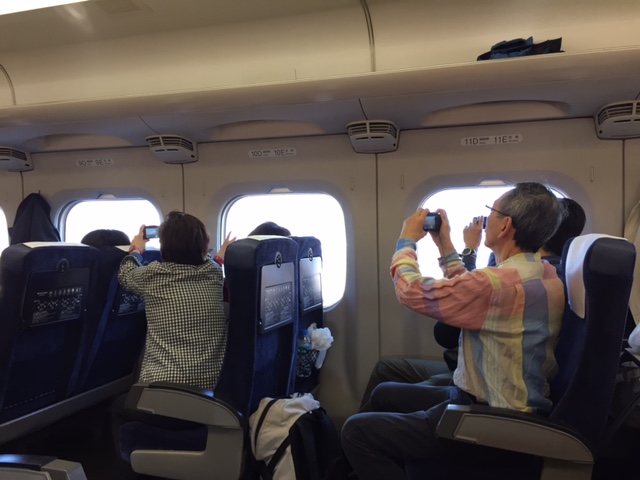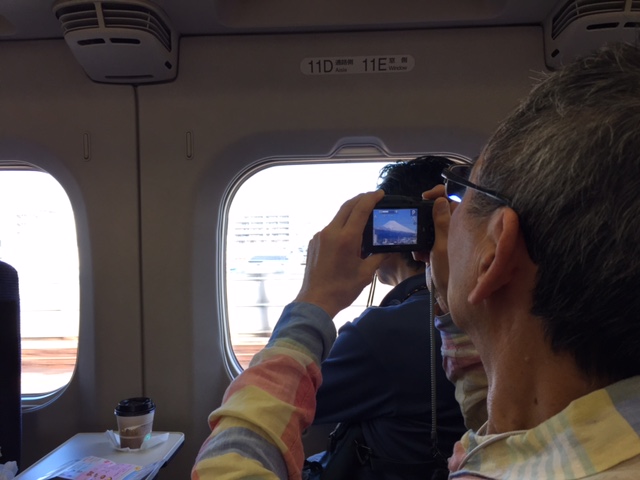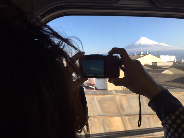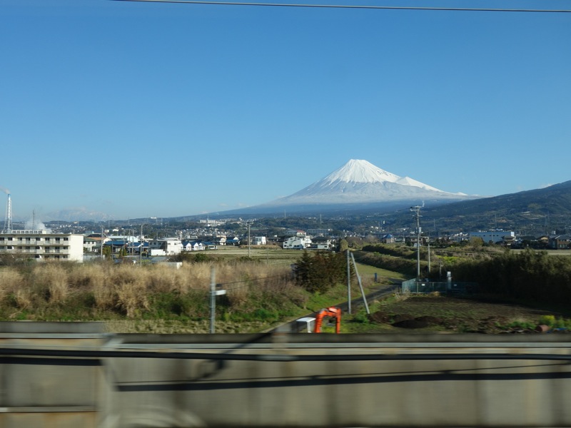 新幹線はどんどん静岡の町を走りぬけ 少し違った方向からの富士山。みるみると表情が変わる。