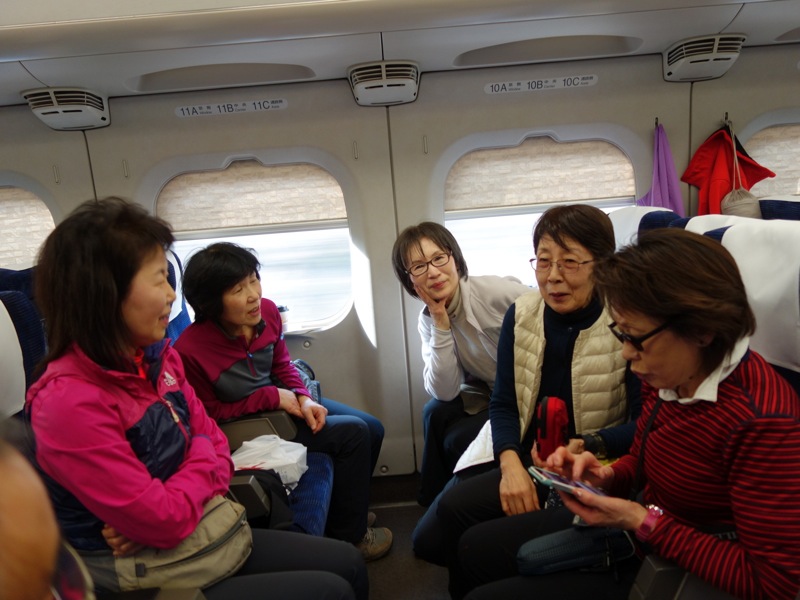 真白き富士の嶺とは 正しくこの様な富士ではないだろうか。新幹線から眺めた朝日に輝く富士山に歓声が上がった。