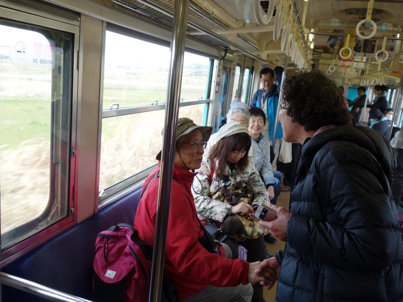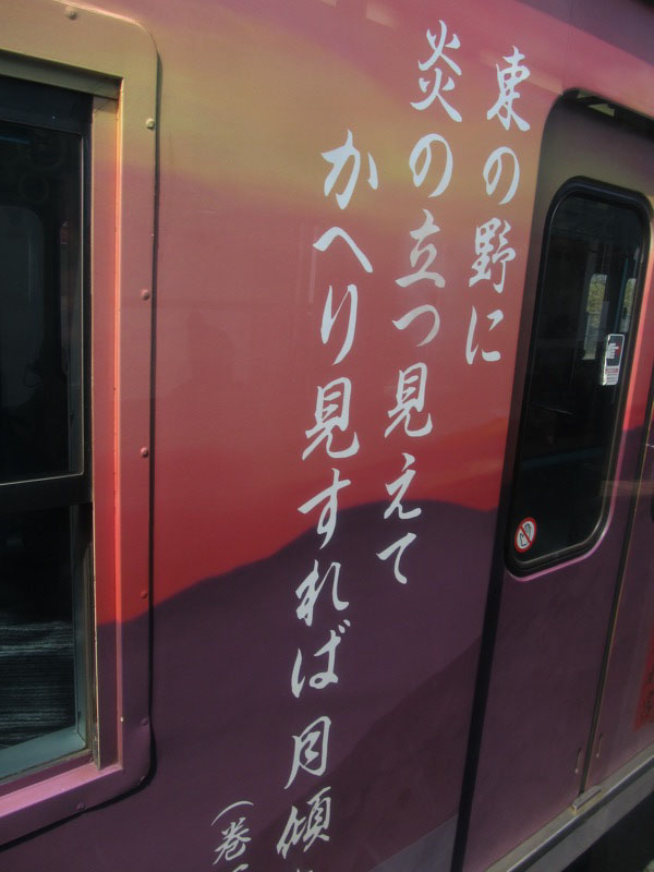 桜井線の車両にはお習字の見本がいっぱい書かれていました。
