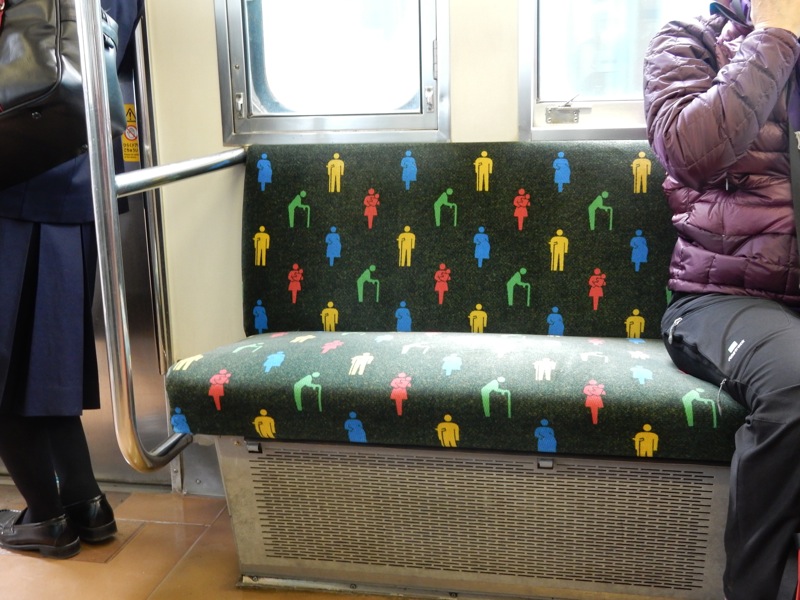 一日目。JR桜井線車内の中央に広々と設けられているシルバーシート席。
