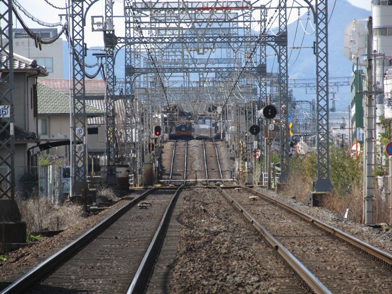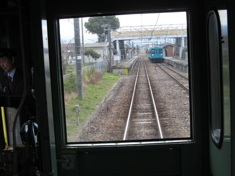 私は鉄道マニアではないので、強いて最前部に陣取るということはないのですが、これは柳本駅へと入っていくところです。