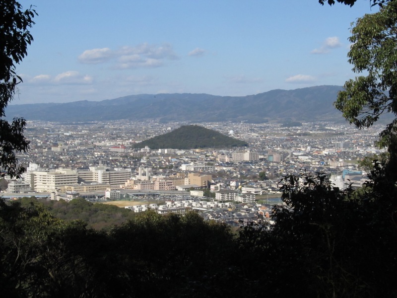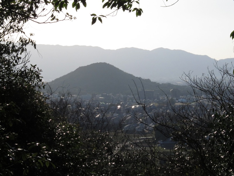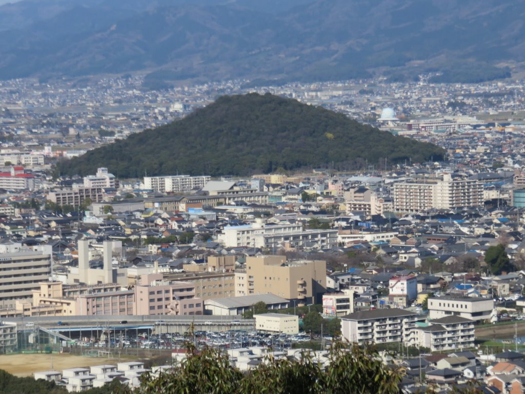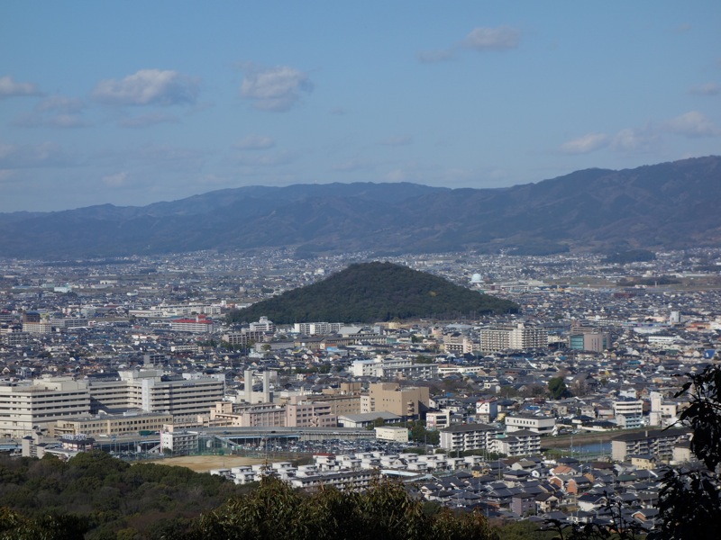 数時間前に登った耳成山を畝傍山の山頂から眺める事が出来た。均整の取れた山容だ。
