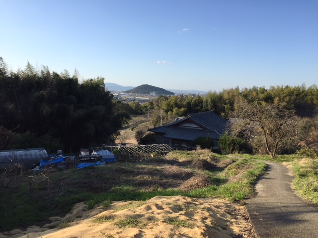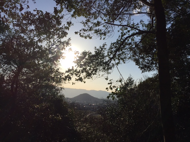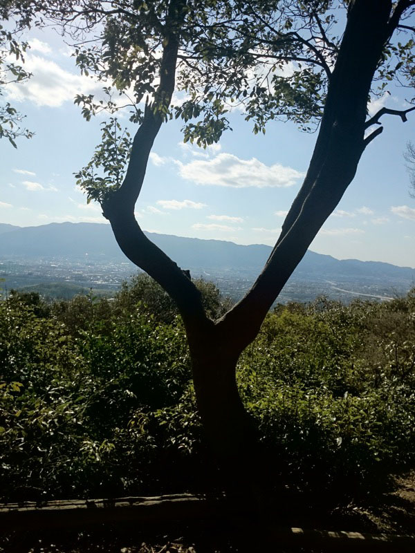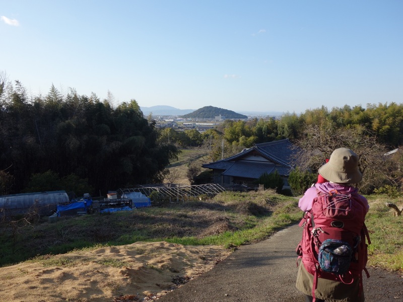 この写真は大和三山3つめの天香具山に登り始めたところです。見えているのは耳成山です。