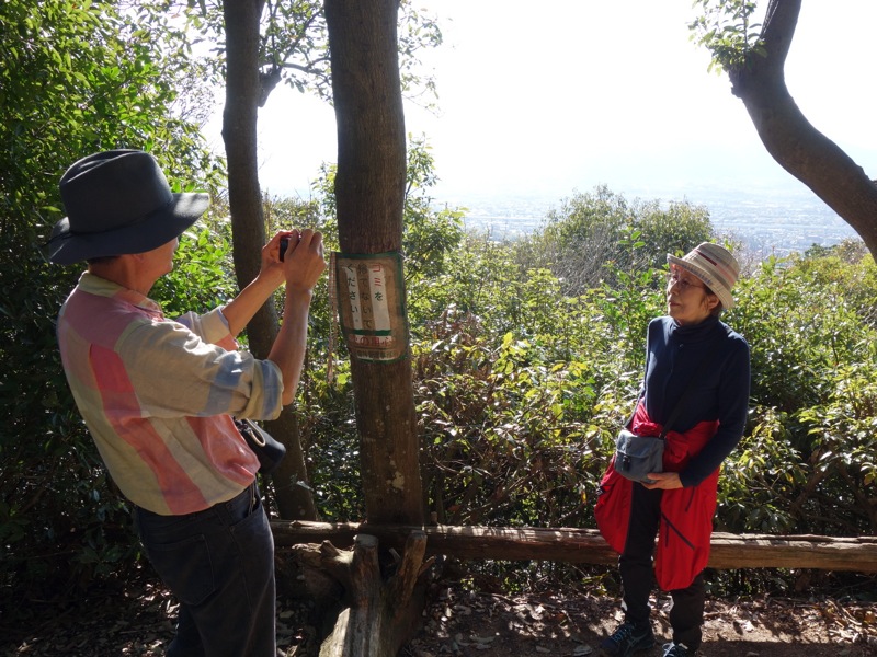 休憩ついでに畝傍山山頂での記念写真。耳成山でもそうだったけれど、きちんとした山頂標識のたぐいはありません。