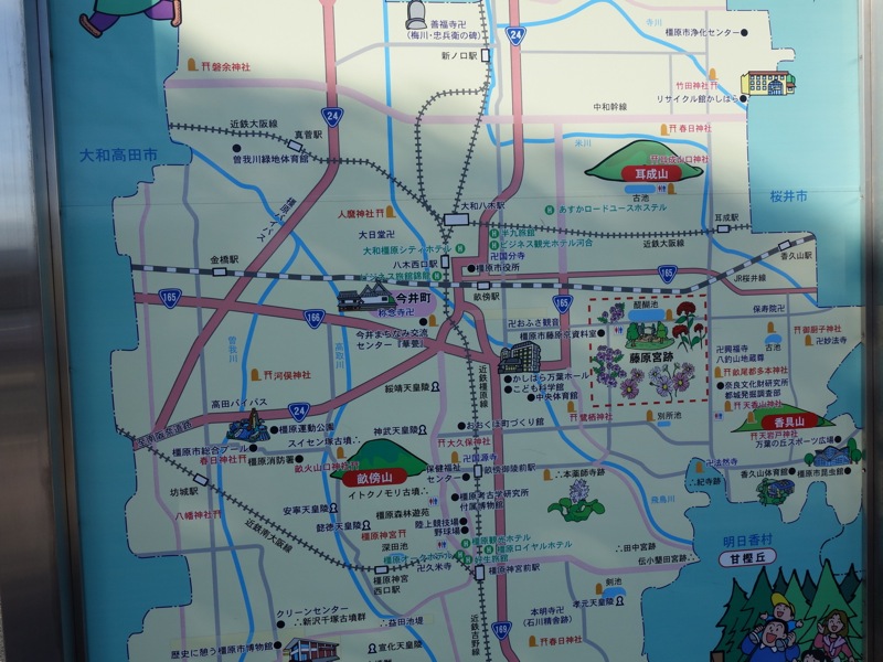 この看板でこの日歩いた大和三山の位置関係、距離感、が実感を伴ってきた。