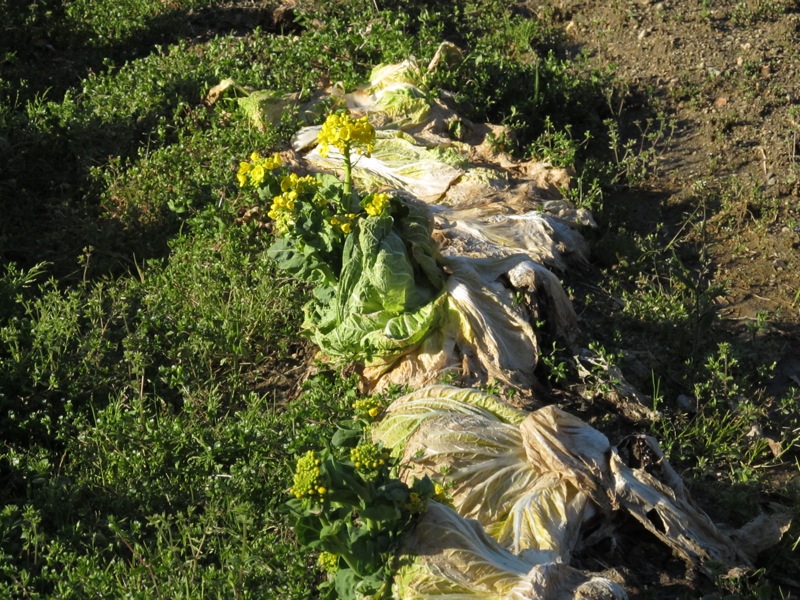 畑に、キャベツの花が咲いていました。