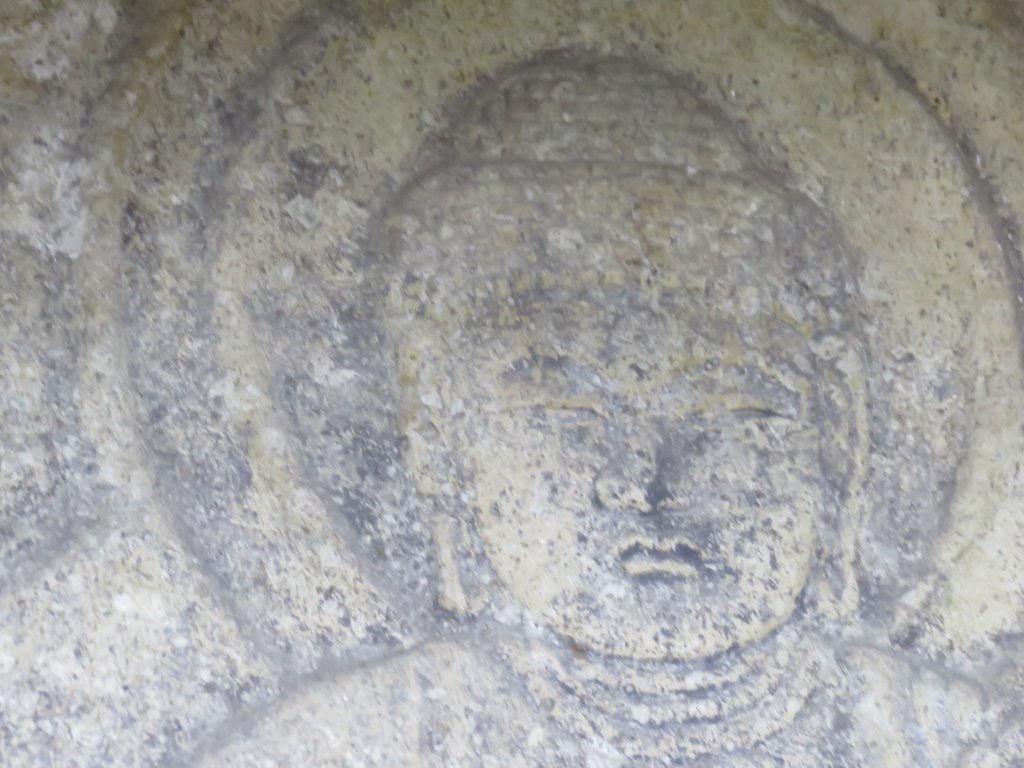 右が釈迦如来、左が弥勒菩薩とされているとのこと。貞観時代(平安時代初期)から鎌倉時代に彫られた石仏というから、奈良の仏像としては古いとは言えないけれど、明治初年に引き起こされたの廃仏毀釈運動を逃れて生き延びただけあって、なかなかいいお顔をしている。