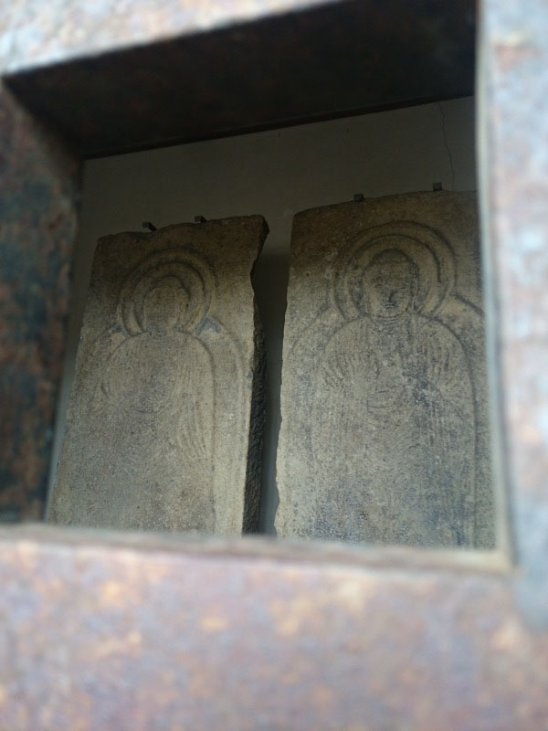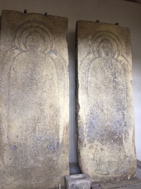 お堂の中には石板に彫られた仏さまが2体安置されています。