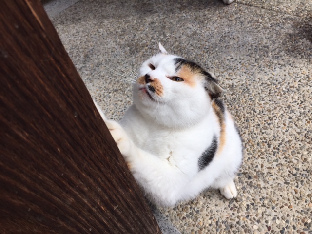 この牛さんも背後に見える鶏さんたちと同様、信者の寄進で、神様との直接の関係はない、とのこと。でもお賓頭廬(びんずる)さまのように、なで仏として、なにかお祈りしていく人がたくさんいるらしいことがわかります。