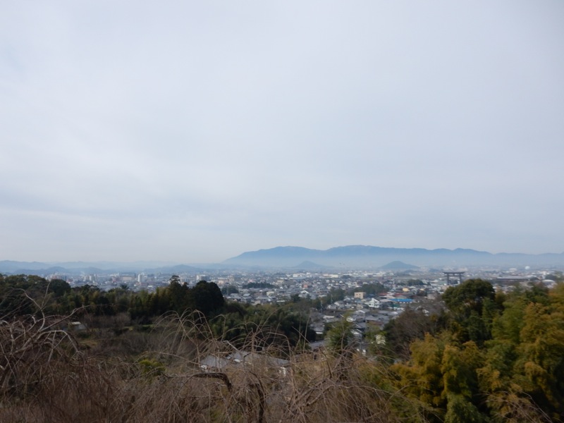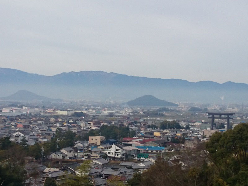 歩いてきた道を振り返ると 古代の人も眺めただろう なだらかな山並みが取り囲んでいて ゆったりとする。