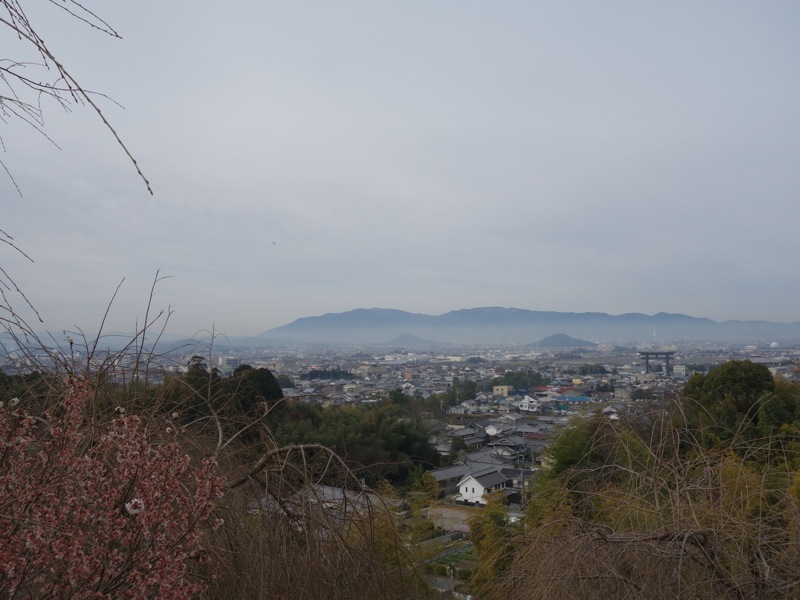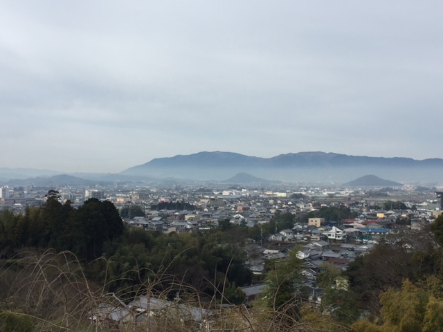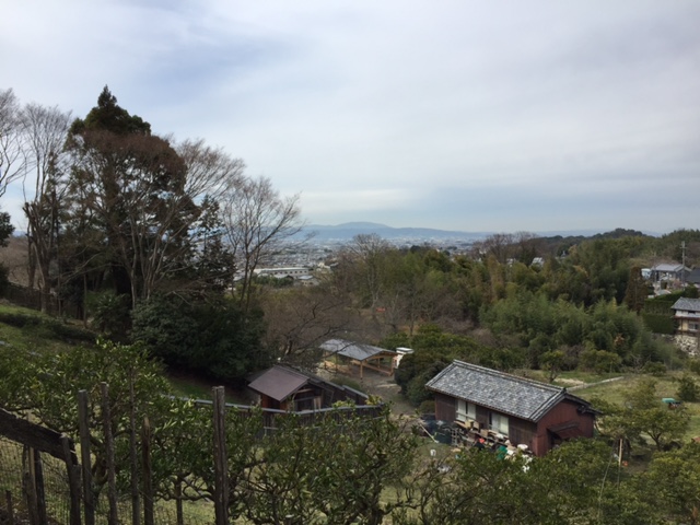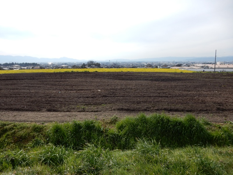 黄色くみえるのは菜の花です。その先に天理の町がボヤーとみえました。