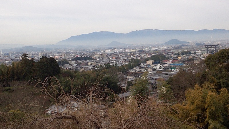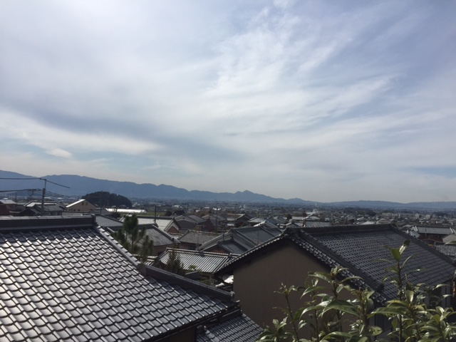 ホテルウェルネス大和路の二階からの一枚。天の香具山からこのホテルまでの舗装道路の長い歩行で私の右足裏には 初めてマメが出来てしまった。