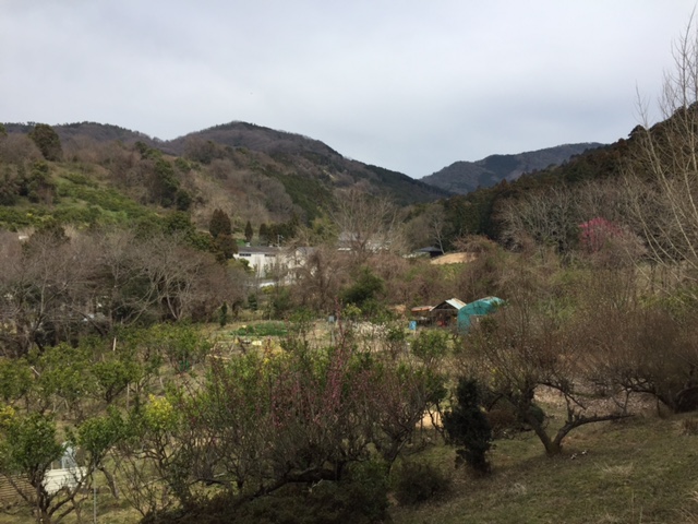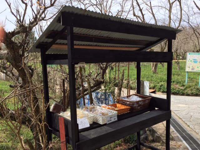 景行天皇陵と崇神天皇陵の間にトイレ付きの休憩所がありました。果樹園が広がり、大和平野が広々と見渡せる気持ちのいい場所でした。