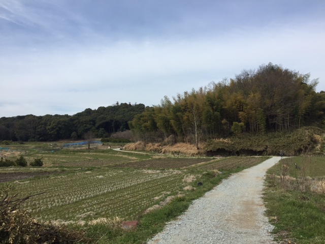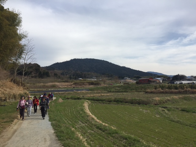 田園と山の境目を、足どりも軽く歩いていきます。早春の心地いい1日です。