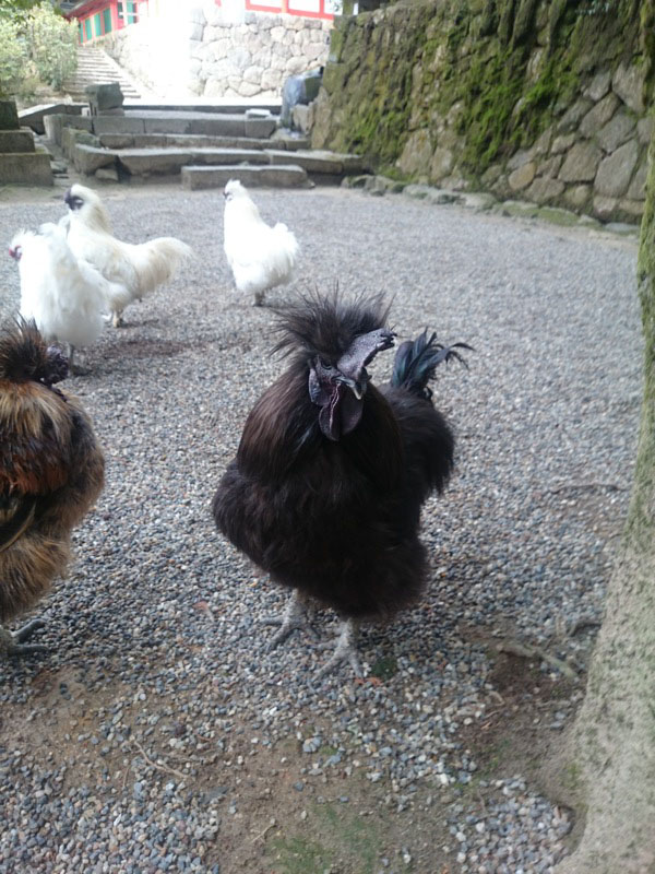 石上神宮境内の烏骨鶏さま。一度食べてみたい卵です。