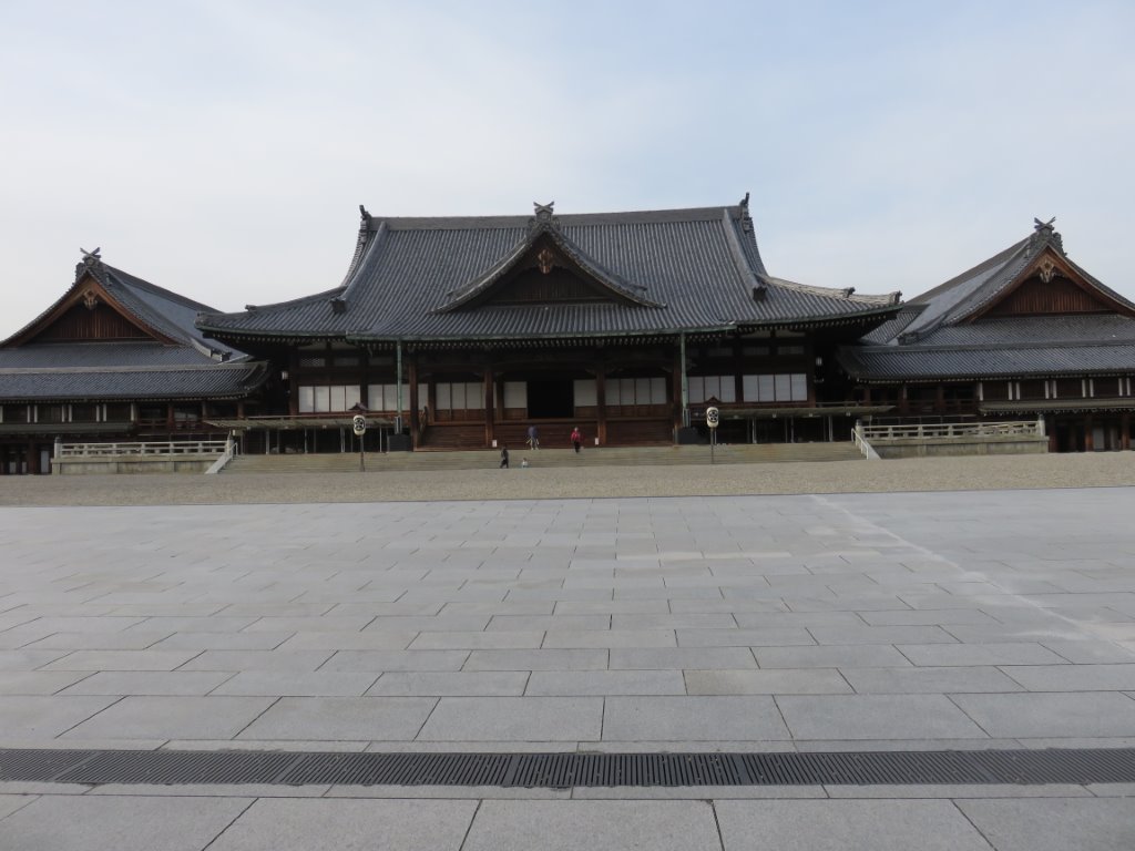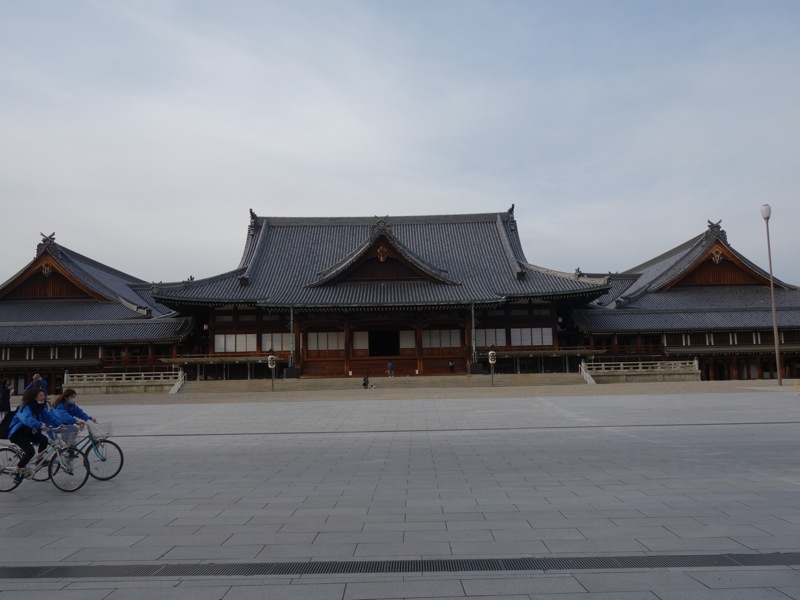 天理教の本殿。左からくる自転車で本殿前の広場の空間的大きさが分かると思う。