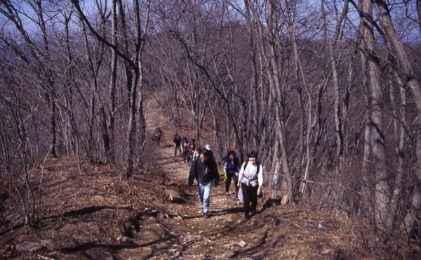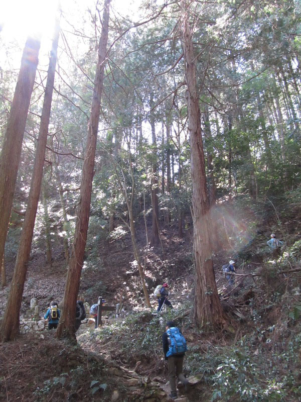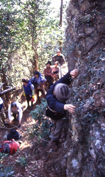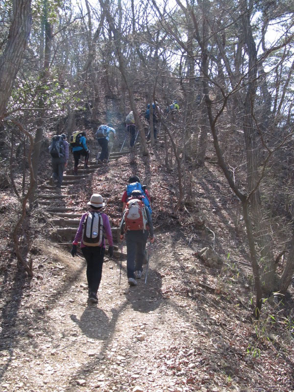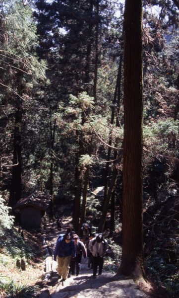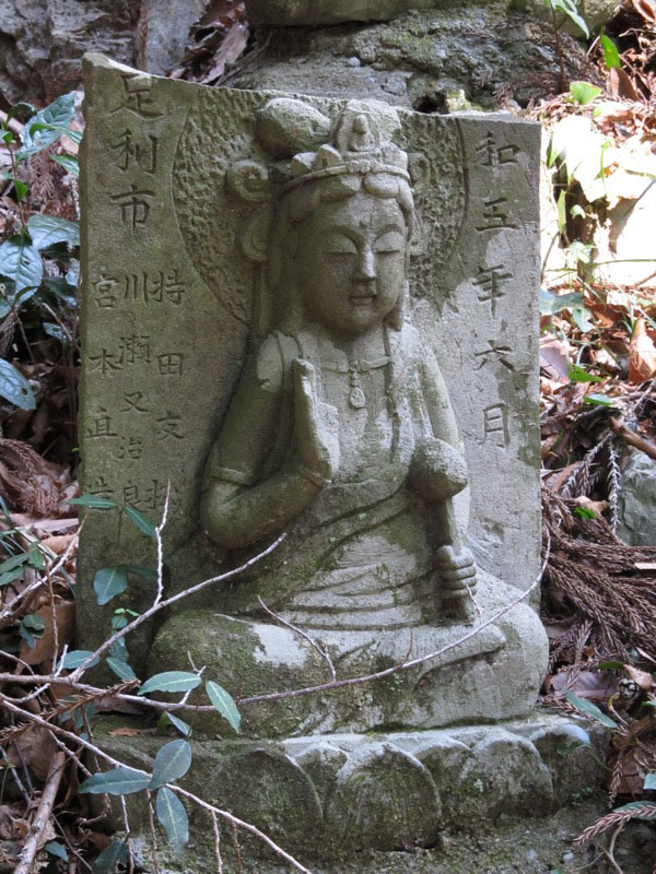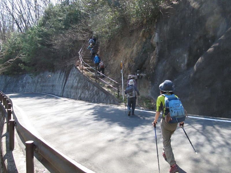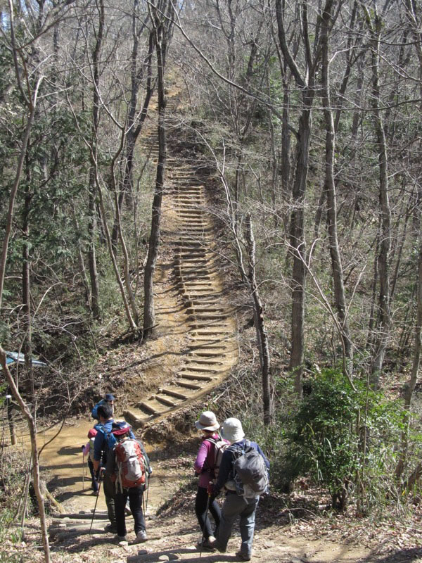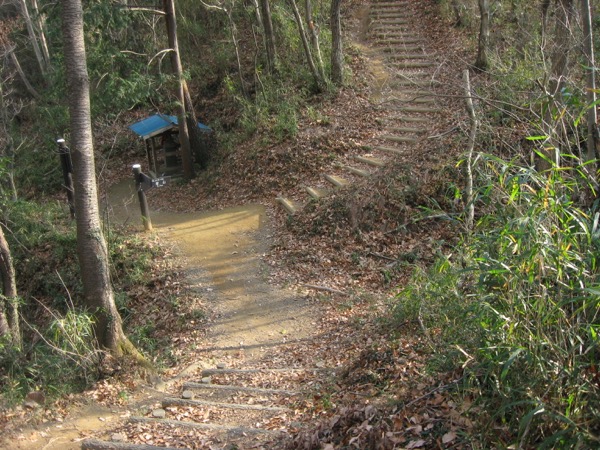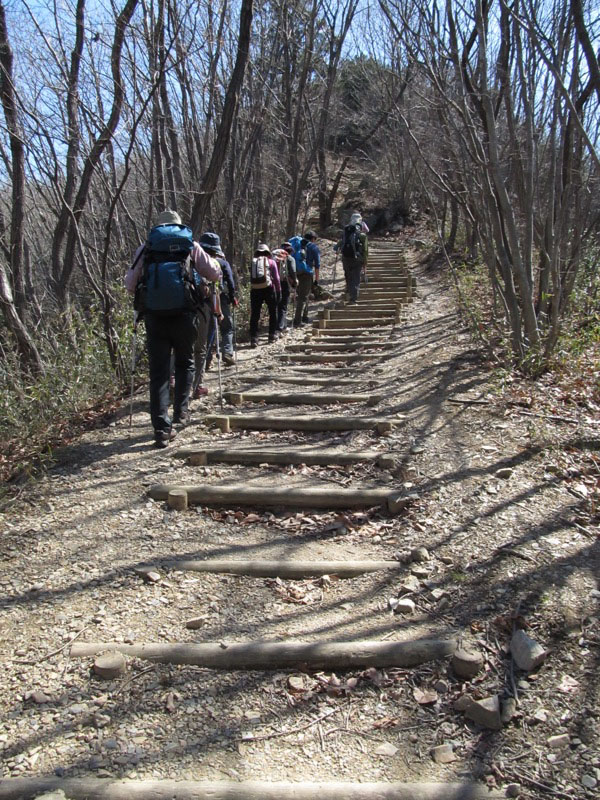 道はものすごくしっかりと整備されています。以前糸の会の常連だった男性(Aさん)は、幼少期を足利で過ごしたそうですが、この道を遠足で歩いたとか。かれは途中で(オシッコしたくなって)みんなとはぐれ、道を間違えて下山してしまい、大騒ぎになったとか。現在もここは地元の小学生の遠足ルートだということです。それも学校から歩いて……。