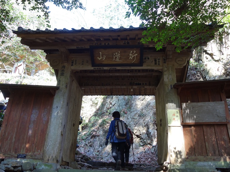 駐車場から長い階段を上ったところに山の寺らしい小さいけれどがっしりとした山門があった。これが登山道の入り口でもあるらしい。