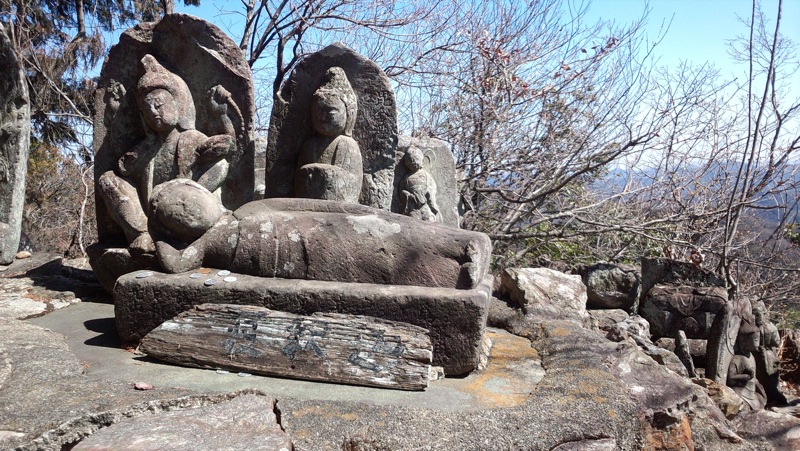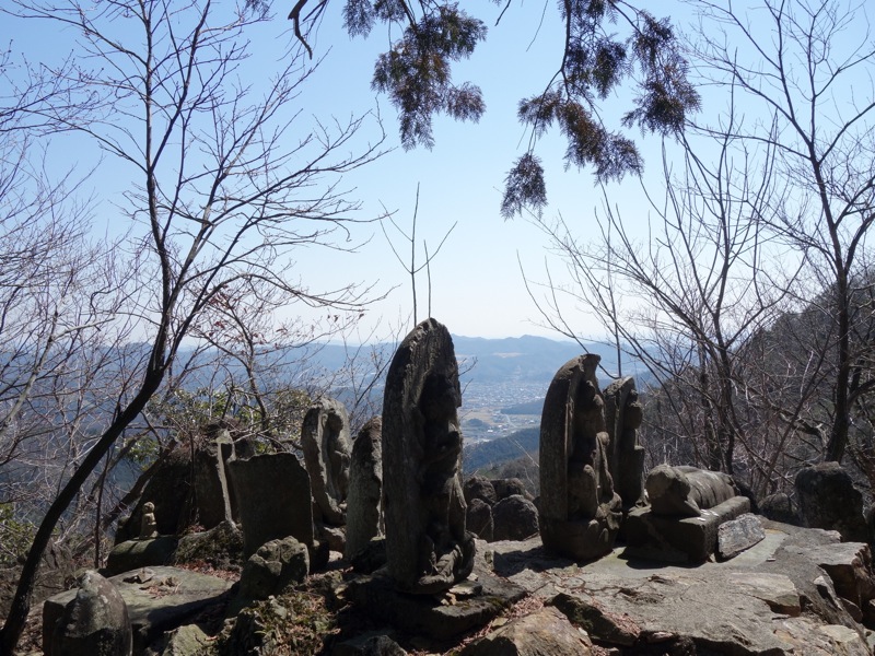 起点の行道山浄因寺は「関東高野山」と呼ばれる名刹。行道山はその寺の山号なのですが、登ったところにある標高442mの無名峰を行道山と総称するという説をここではとっておきます。そこにはたぶん石尊山という名があるだろうと思いますが、谷をはさんで北西に標高486mの石尊山がありますから、そこは石尊山の展望台というのが穏当な解釈でしょう。