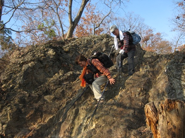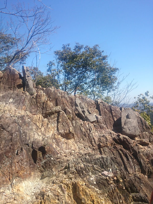 尾根の先端に寄り道します。自分がどこにいるのか、具体的にはわからないのですが、清心亭から天高橋を渡った岩尾根のほぼ先端部分がこのあたりになるようです。
