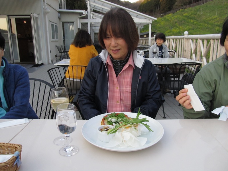 *この日は1040浄因寺駐車場(標高約250m)を出発→1050-1110浄因寺で休憩(標高約300m)→1155-1210石尊山見晴台(標高442m)→1250-1305毘沙門天でトイレ休憩(標高約350m)→1420-35両崖山山頂(標高251m)→1530-1615織姫公園ハーブレストラン(標高約100m)でお茶。