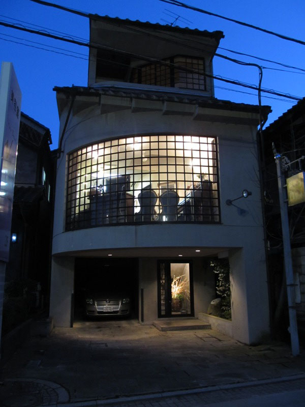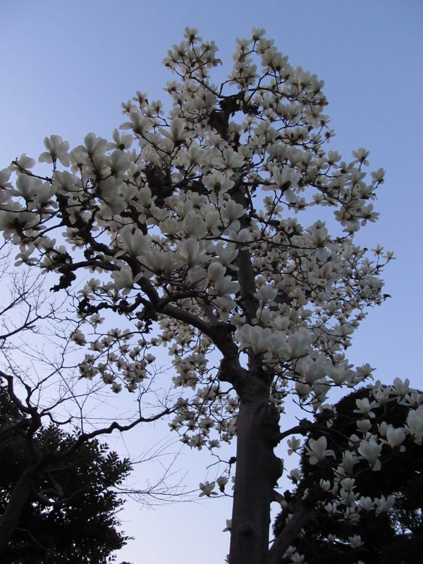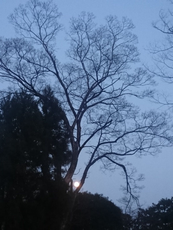 行道山の梅……でしょうか。山門下から振り返りつつ見上げた風景で、建物は有名な清心亭。