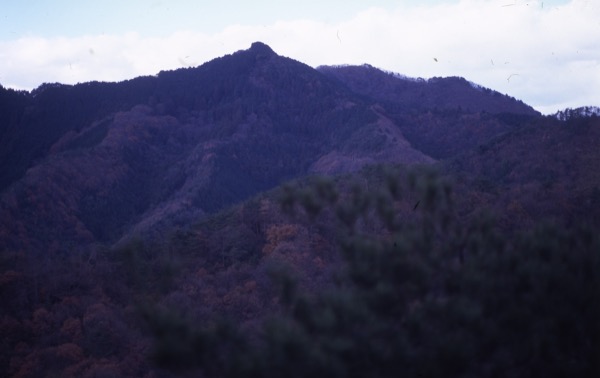 熊野社のところから見下ろした風景です。秋にはこれが素晴らしい紅葉に彩られるというわけです。登山道は右手の斜面をトラバースしながら、ほぼ向かいの尾根にとりつきます。
