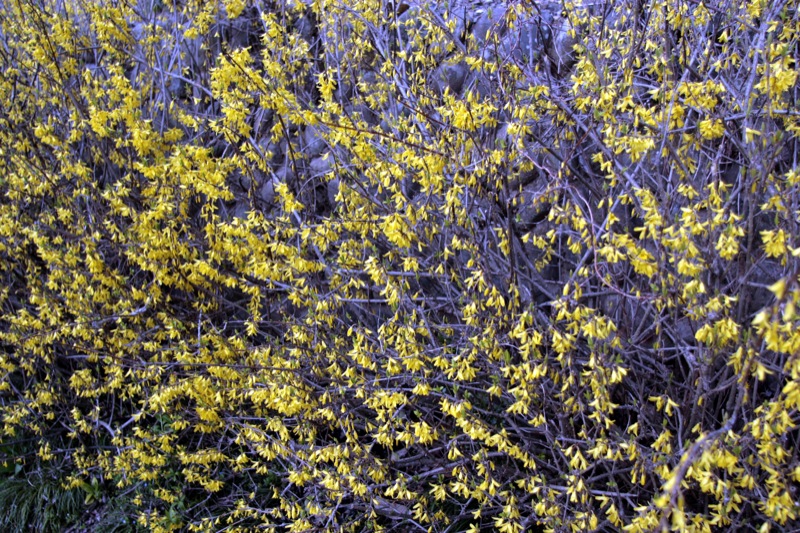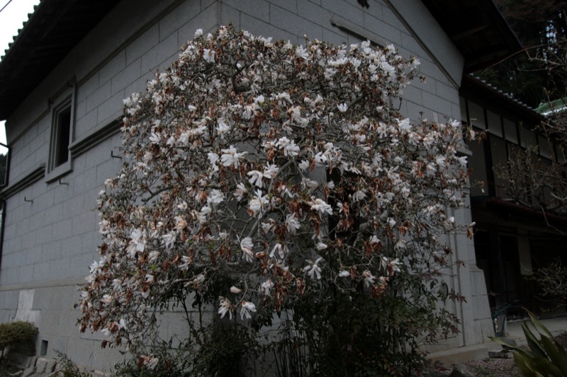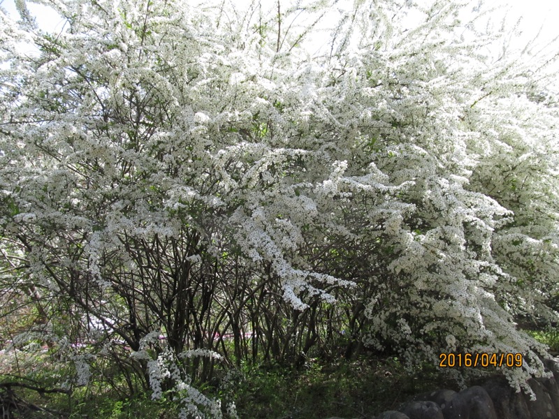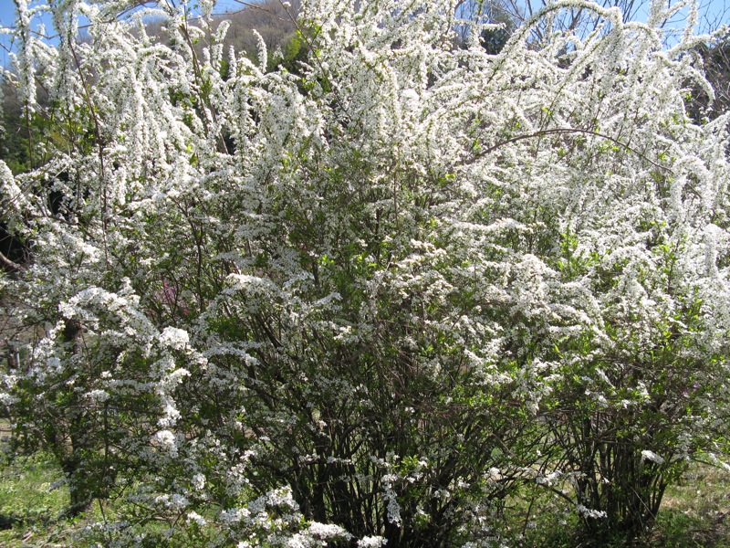 しかしバス会社の奮闘のおかげでほぼ予定通り、10時10分に皆谷バス停を出発したのです。そしておおよそ2分後、登山道にはいるとすぐ、来る度にここにある、このユキヤナギがありました。