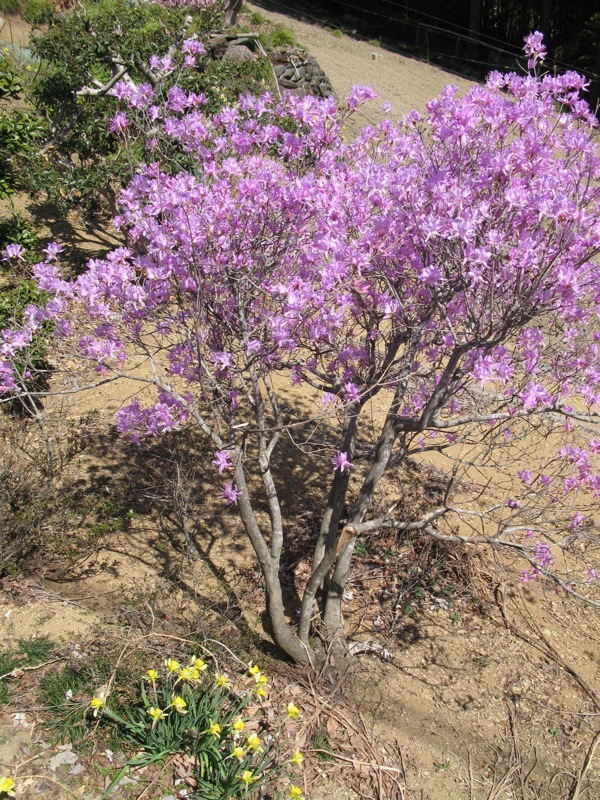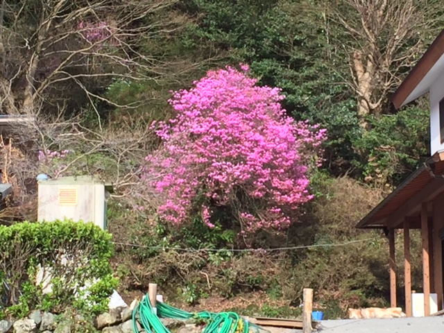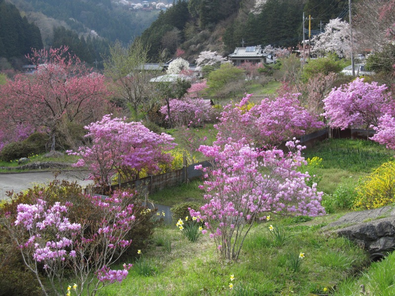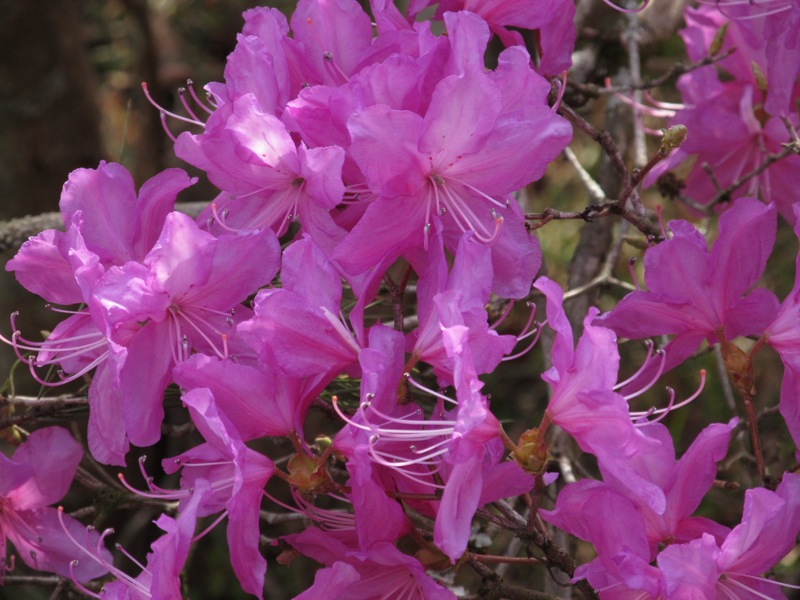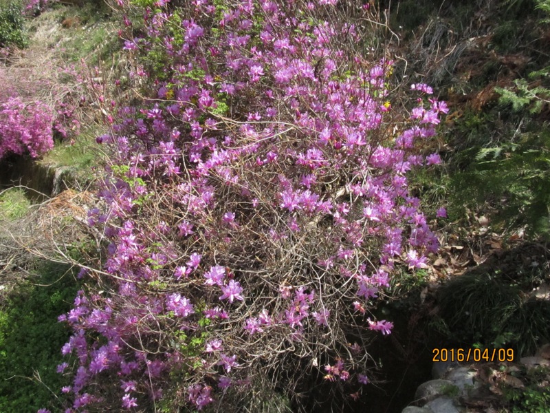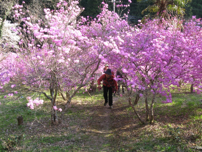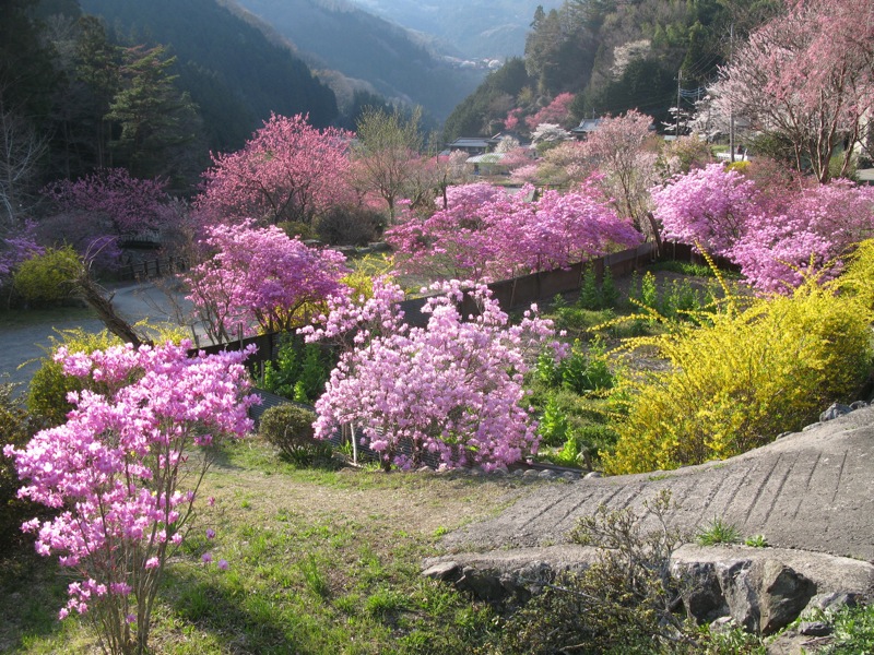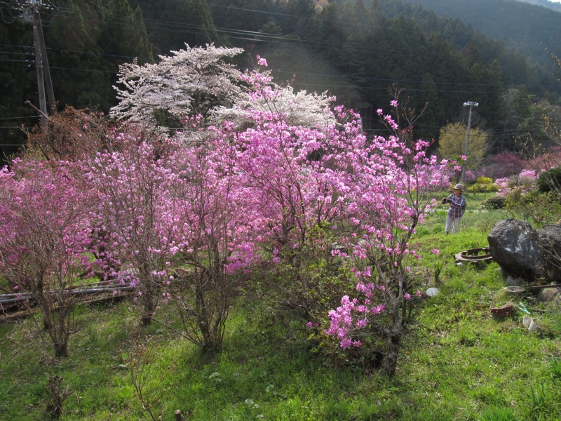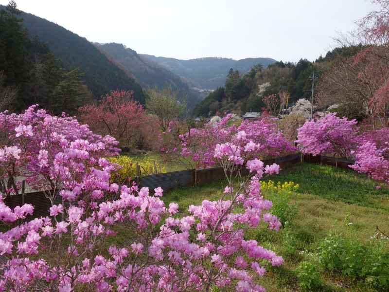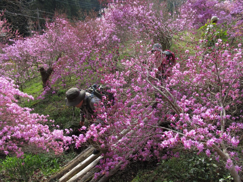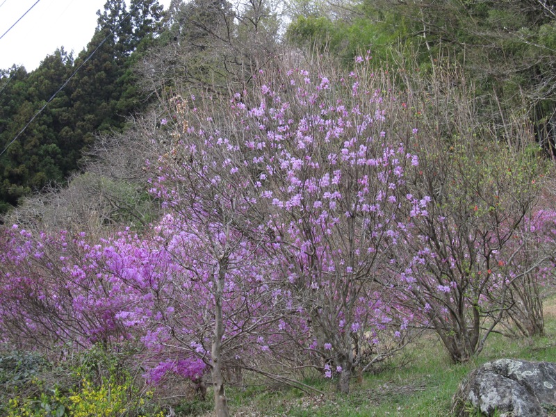 これは何ツツジ……なんでしょうか。じつは図鑑類をいろいろ調べてみたのですが、この写真ではもちろんよくわかりません。でもこの花はムラサキツツジ……のようなのです。まさにここ、埼玉県秩父郡東秩父村の「村の花」ですから。でも「ミツバツツジ」といってもなんの問題もないようです。