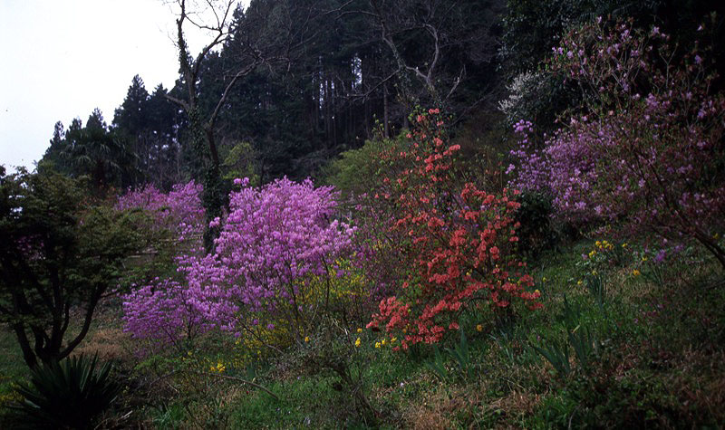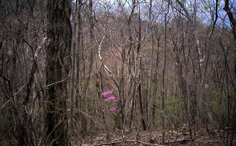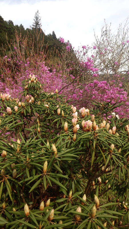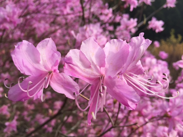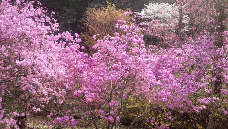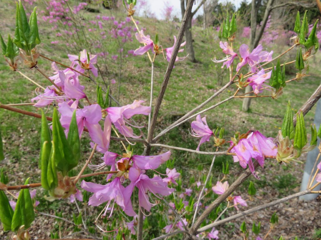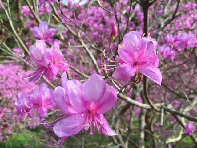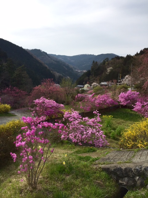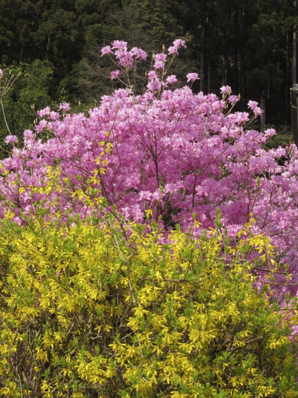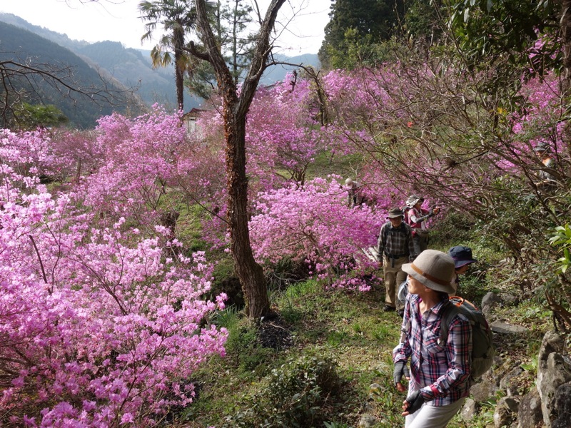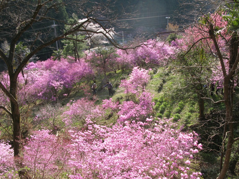 これは何ツツジ……なんでしょうか。じつは図鑑類をいろいろ調べてみたのですが、この写真ではもちろんよくわかりません。でもこの花はムラサキツツジ……のようなのです。まさにここ、埼玉県秩父郡東秩父村の「村の花」ですから。でも「ミツバツツジ」といってもなんの問題もないようです。