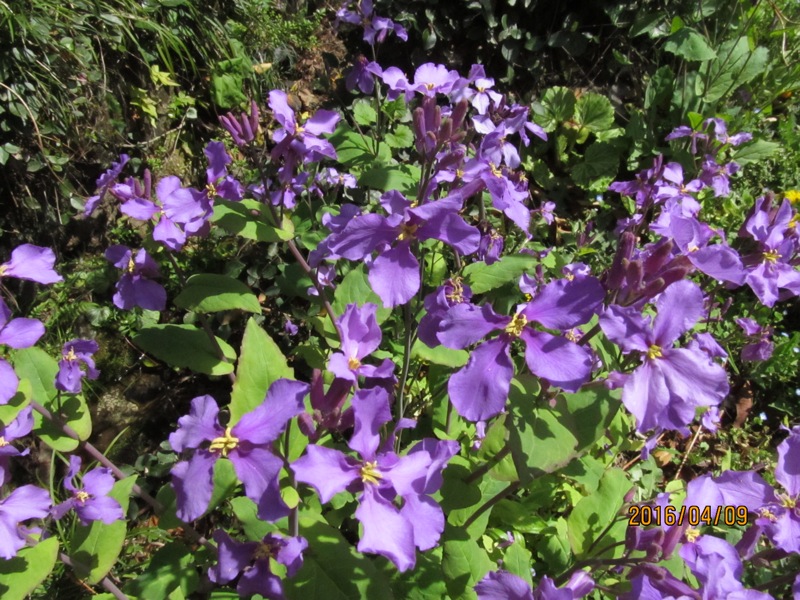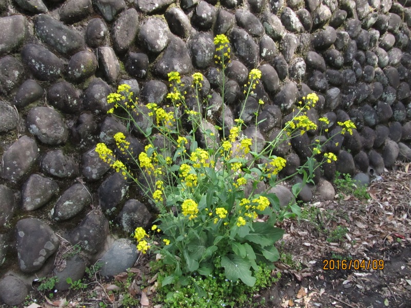 本名か別名かわかりませんがショカツサイ(諸葛菜)とも名乗っていて、中国の名軍師・諸葛亮(孔明)が育ちの早いこの菜を戦陣で蒔いたとされる故事によるとか。根が大根ならすこしは腹の足しになると思いますが、新鮮な菜っ葉としての軍用植物だったようです。