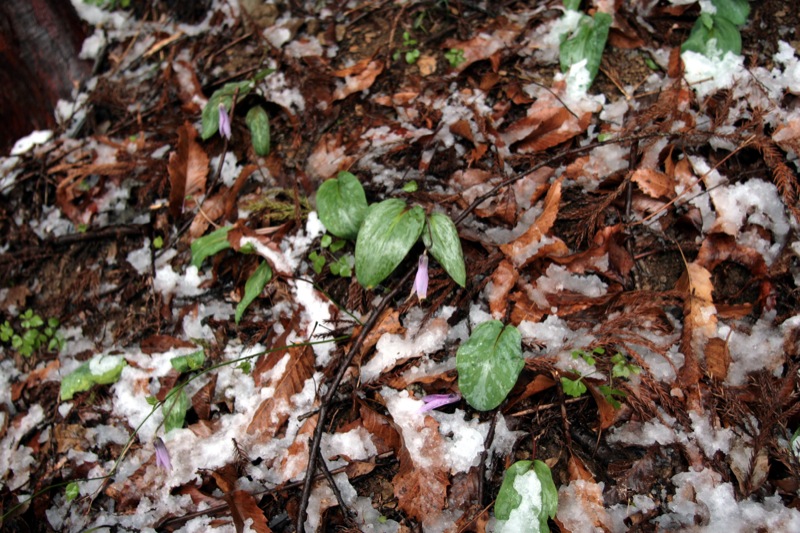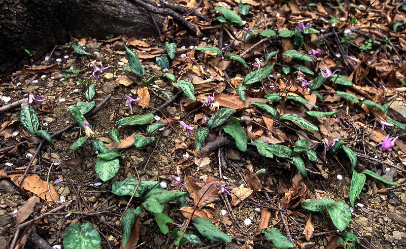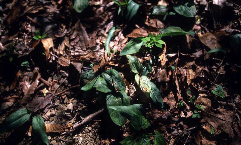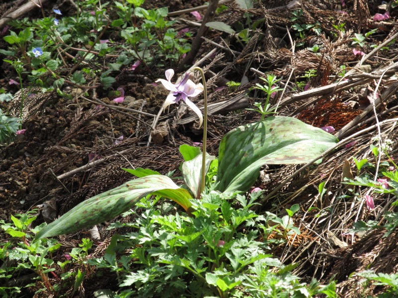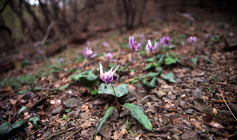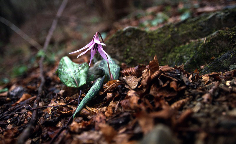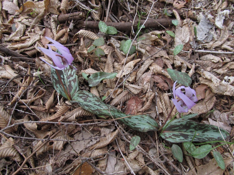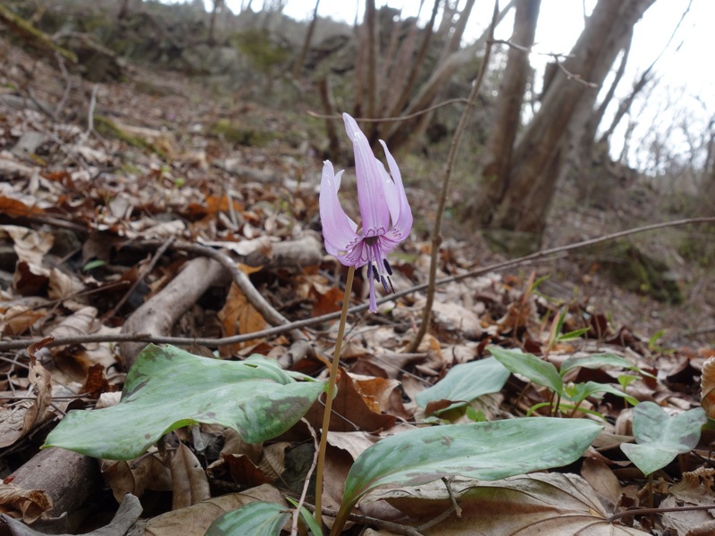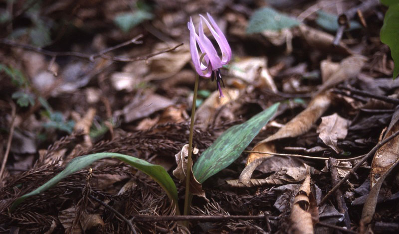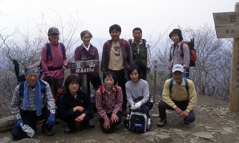 糸の会No.203の山行で初めて笠山を訪れました。たまたま見たガイドブックに「シュンラン、カタクリ、ヤブレガサが群落をなしている」と書かれていたのがきっかけです。この夏には雲ノ平、槍ヶ岳、北岳〜塩見岳、など大物を予定している年でしたから、あまり大きな期待をせずに、出かけたのです。