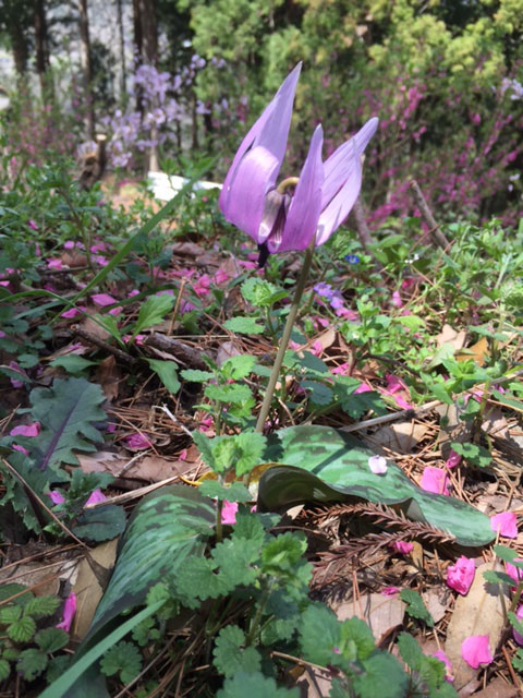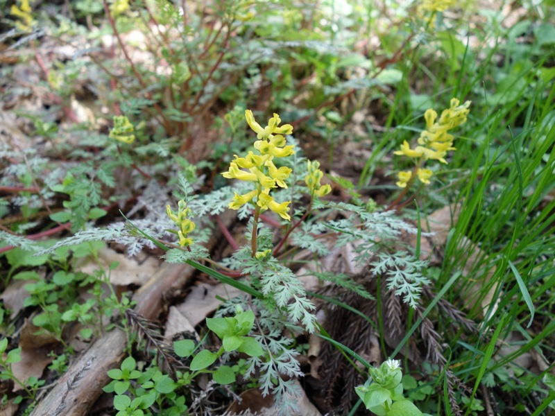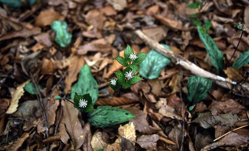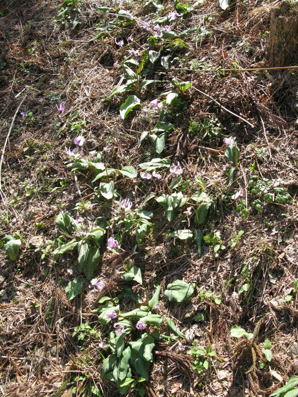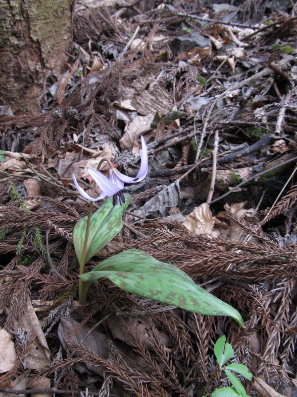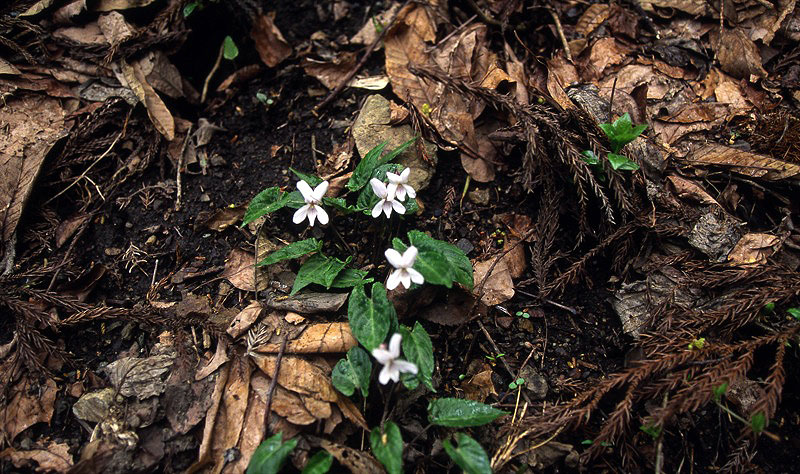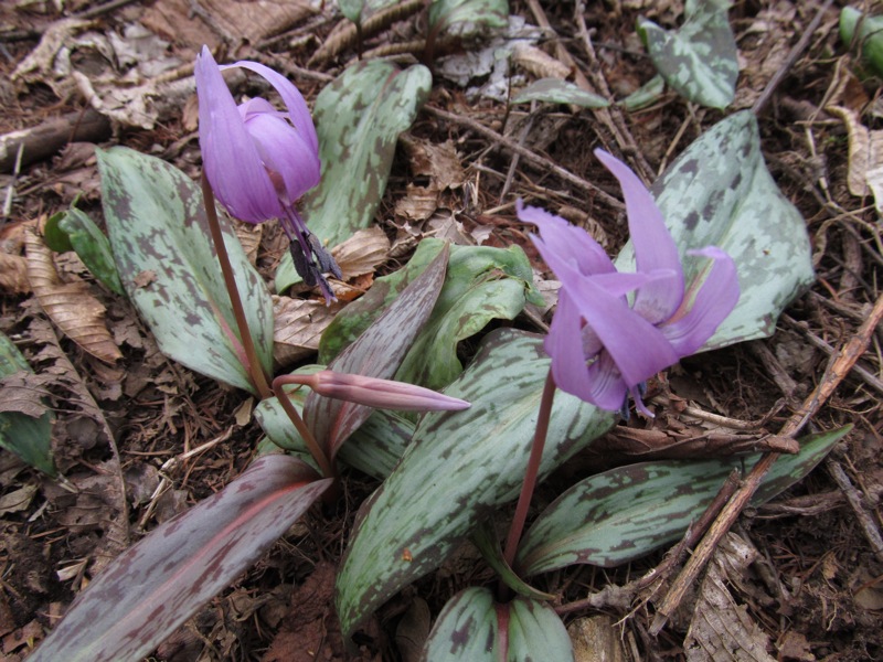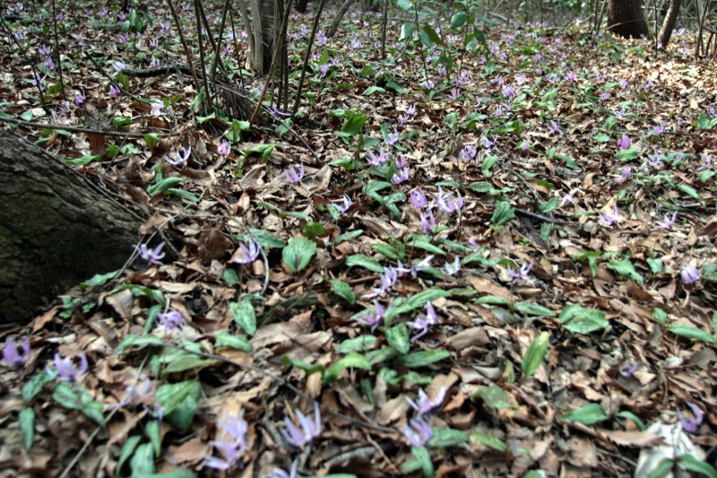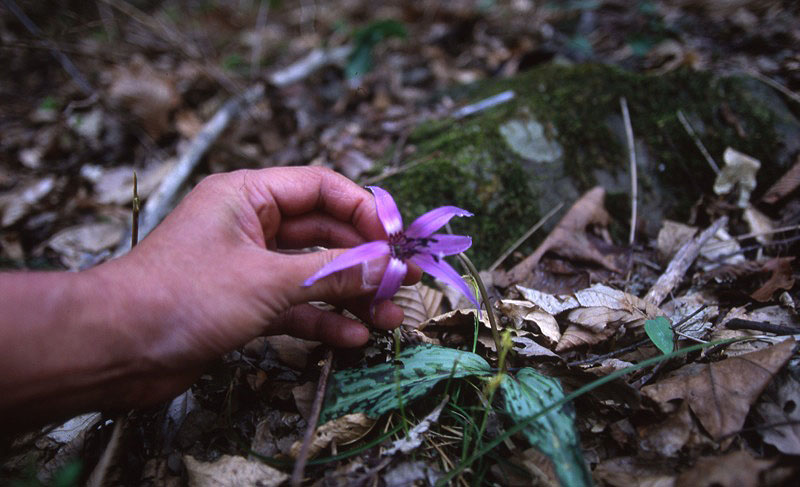 糸の会No.203の山行で初めて笠山を訪れました。たまたま見たガイドブックに「シュンラン、カタクリ、ヤブレガサが群落をなしている」と書かれていたのがきっかけです。この夏には雲ノ平、槍ヶ岳、北岳〜塩見岳、など大物を予定している年でしたから、あまり大きな期待をせずに、出かけたのです。