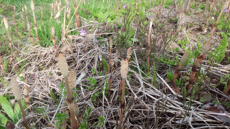 胞子を飛ばすためすっかり傘を開いている。はにしゃぼう氏の「足元の小宇宙」で見たツクシの胞子のダンスが忘れられない。