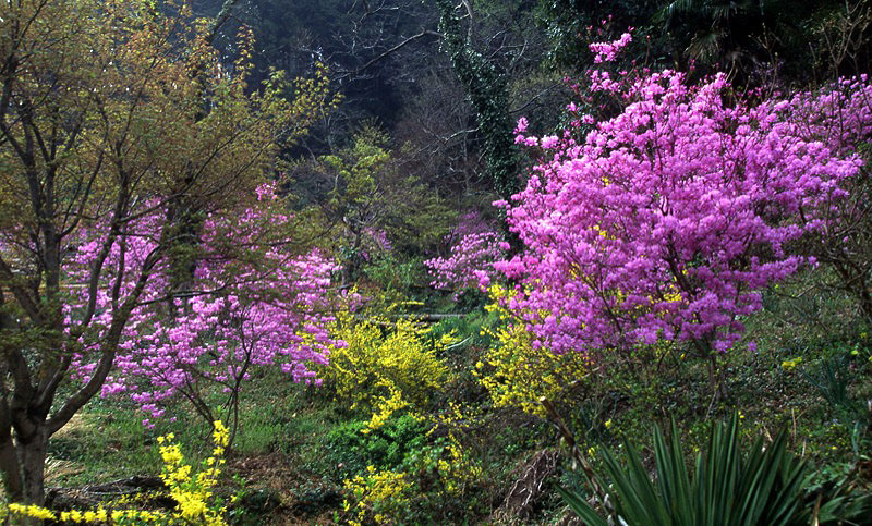 園芸植物のイメージだったが、もともとは山の渓流の日当たりのよい岩場生える日本の野生植物。野生のものは長瀞、奥多摩渓谷に多くあり、しなやかな枝は激流に耐える進化のたまもの。意外な素顔でした。