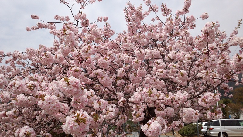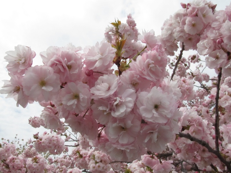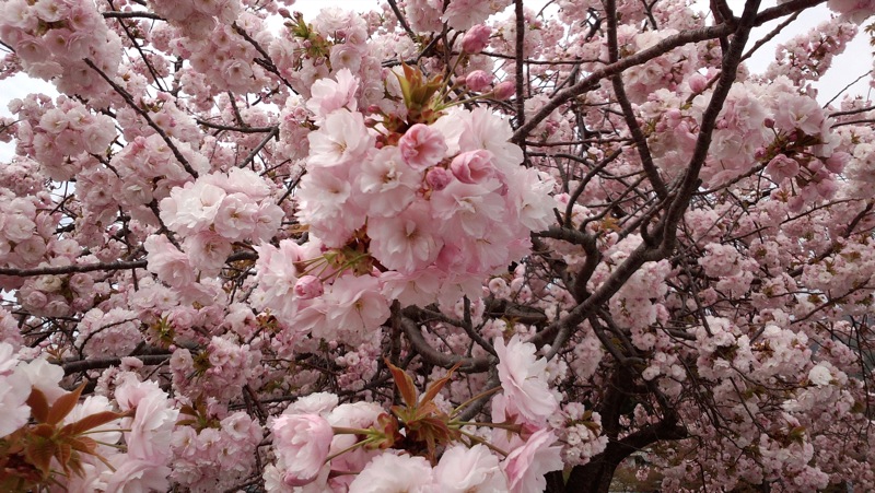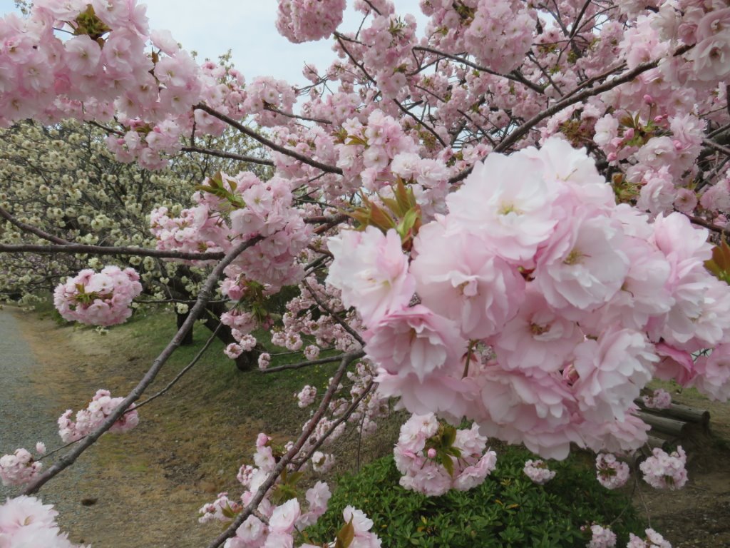 神社へ向かう途中に 色んな種類の桜を 植えた公園があった。八重桜は いつ見ても 暖かで 見ている人を豊かにしてくれるのが 嬉しい。