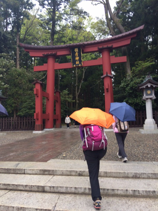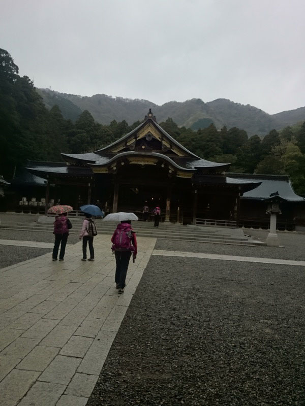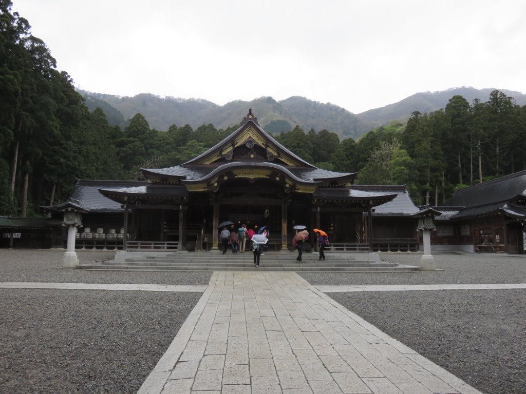 昼食(わっぱ飯)を済ませて 外に出ると いつの間にか雨が降っていた。”お昼ごろ雨”という天気予報通りだが 予報によれば この雨は 直に止むことになっているのでそれを期待して神社を後にした。