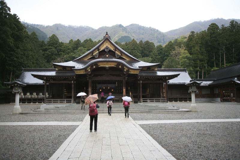 予報通り昼過ぎから雨が降りはじめた。弥彦神社は傘をさして参拝。