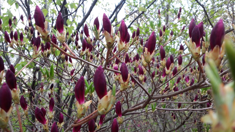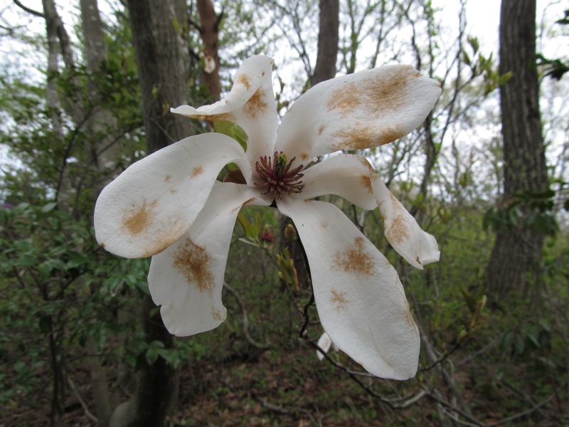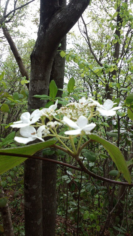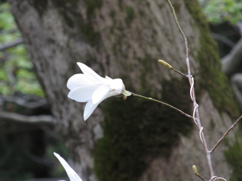 二合目の石柱を過ぎたあたりで、これはタムシバか、コブシか。