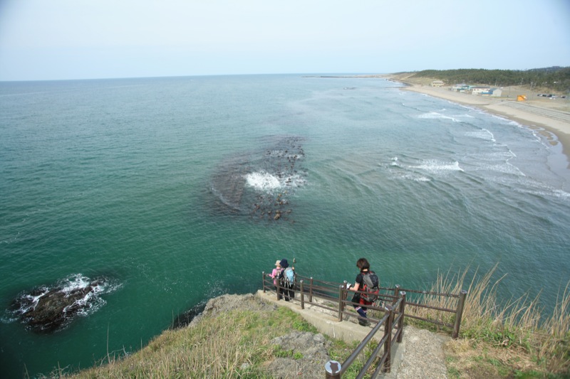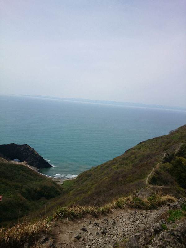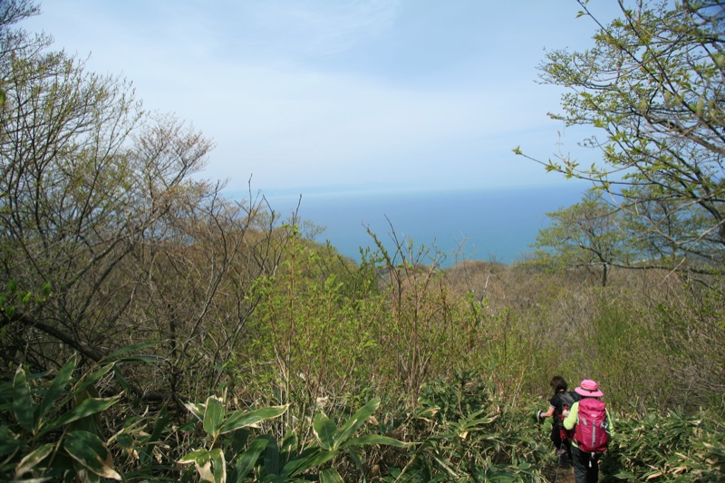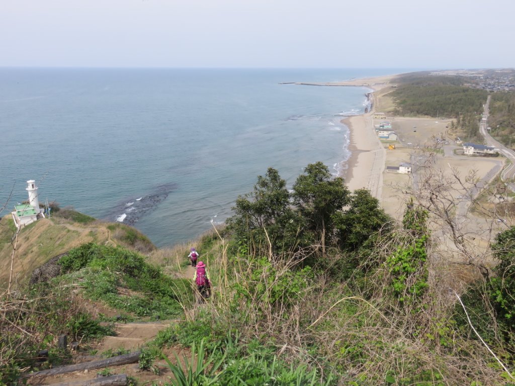弥彦山山頂からは360度の眺望が楽しめた。これは 日本海の眺め。遠くに雪をかぶった山が 霞んで見えている。反対側からは 飯豊山などが 眺められた。こんな時間まで日本海の山のてっぺんにいて 本当に今日中に帰れるのかしらと 不安が頭をよぎりましたが 新幹線様様で 無事帰宅。