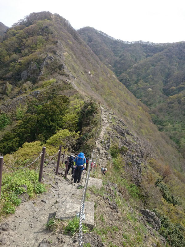 国上山の山頂からこちらに向かうと、蛇崩の縁に立ちます。昨日はそこから左に下って、中腹を向こうへと戻りました。
