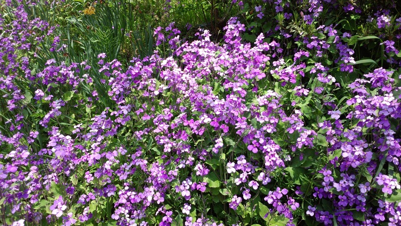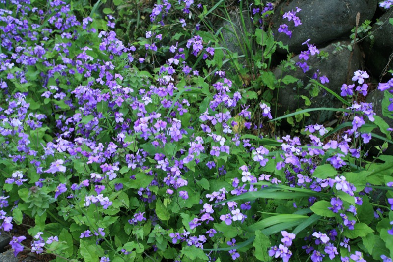ハナダイコン。……といっても、別名にオオアラセイトウ、ショカツサイ、ムラサキハナナなどがある花大根(別名のないハナダイコンもあります)のようです。