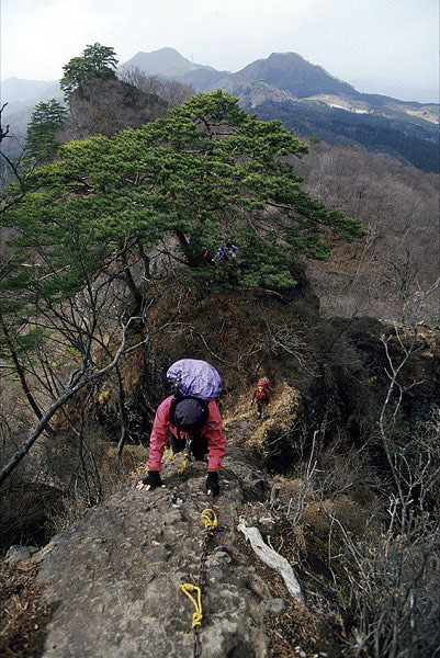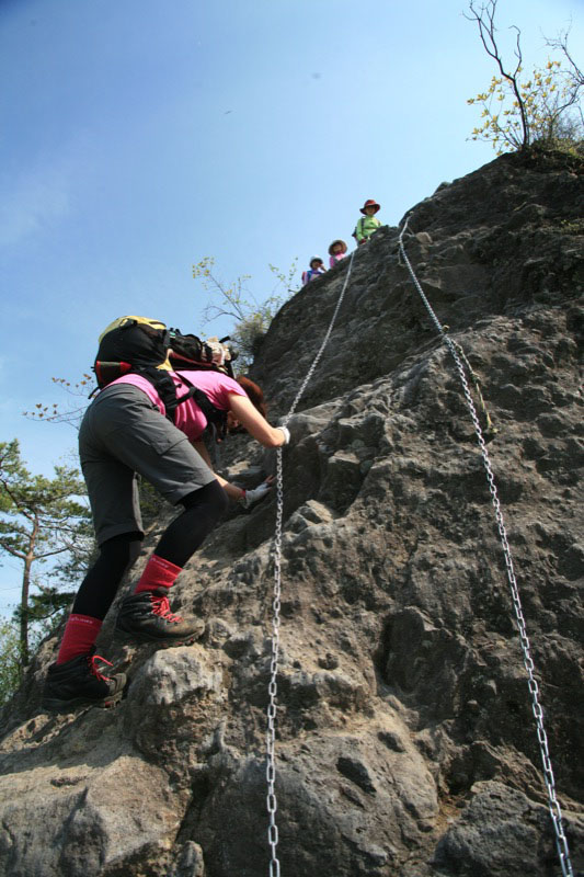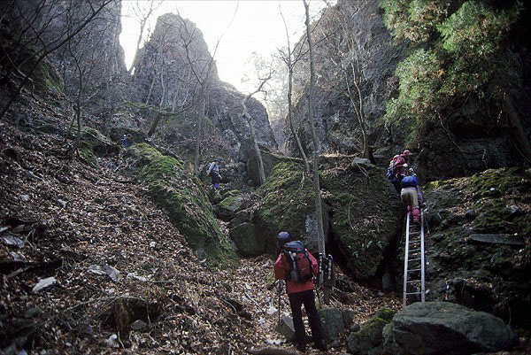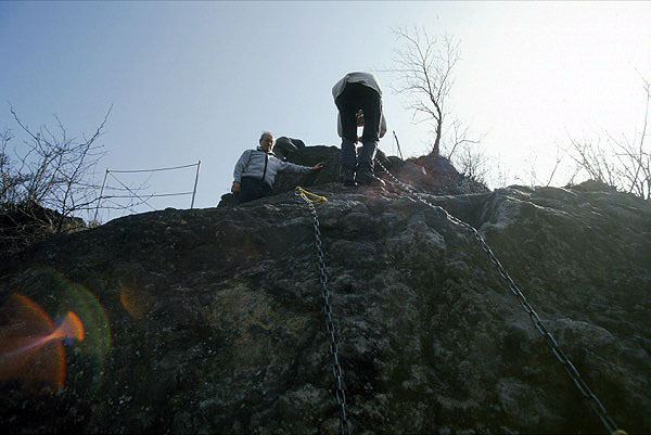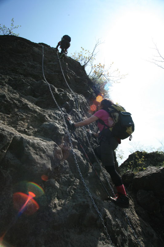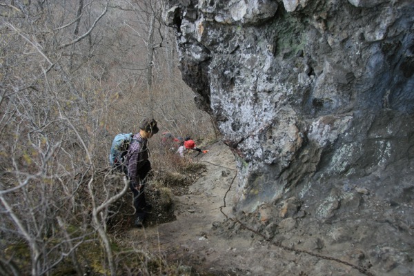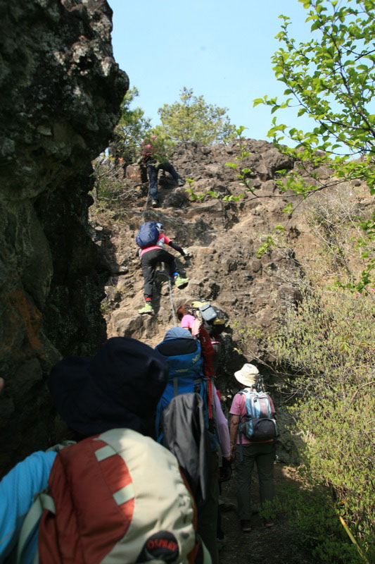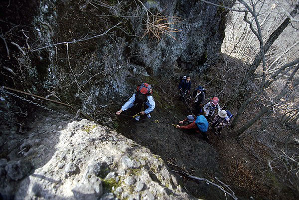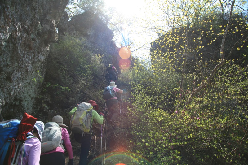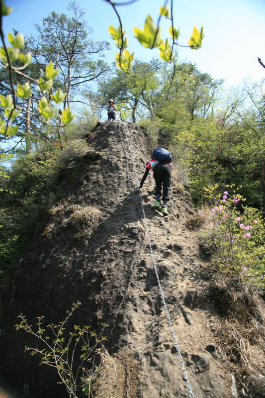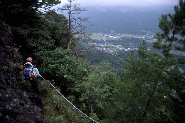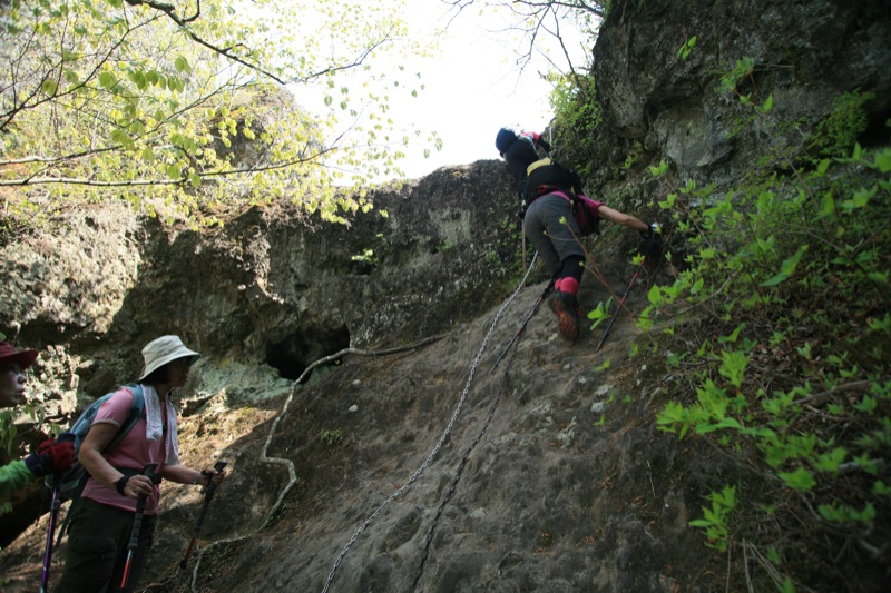 *でした……というのは、この山が今、転落事故の多発する危険な山になってしまったらしいのです。私たちが登ったすぐあとでも、死亡事故が起きています。どうしてなのか具体的なことはわかりませんが、「スリリングだけど危険は少ない」ということは、クサリによって安全は確保されているけれど、環境はきわめて危険、という意味です。クサリを安全に利用できなければ、危険度は一気に上がります。