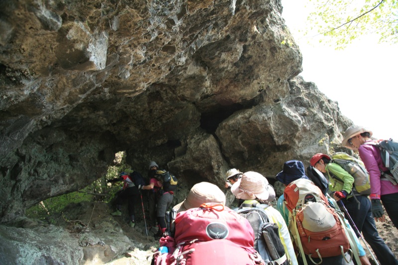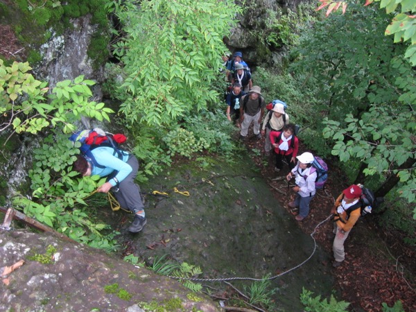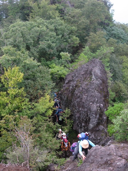 左側にあった岩の脇から、右手にあった岩への登りにかかります。通常の「先頭10分交代」で問題のない登りです。