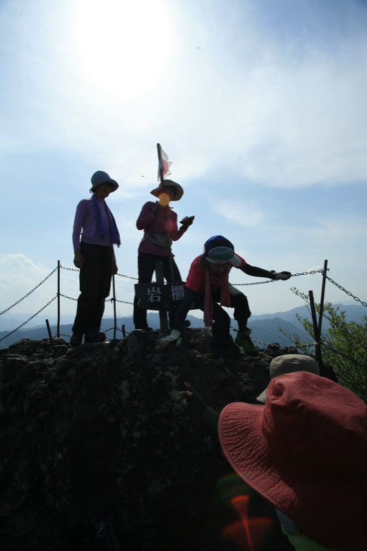 1200 JR吾妻線・郷原駅(標高約400m)を出発。1230-35登山口(標高約500m)、1300-05稜線(標高約700m)で休憩。1310-20天狗の架け橋のところで休憩。1355-1410岩櫃山山頂(標高803m)、1515-25岩櫃城本丸跡(標高約600m)、1530平沢登山口(標高約500m)。