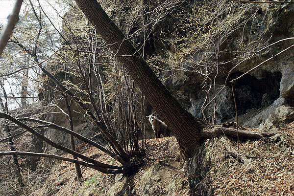 左手の斜面をもう少し登ったところで、以前、カモシカから小石を落とされたことがあります。敵はそのあともずっと私たちを見下ろしていましたから、悪意があってのことではないように思いましたが。