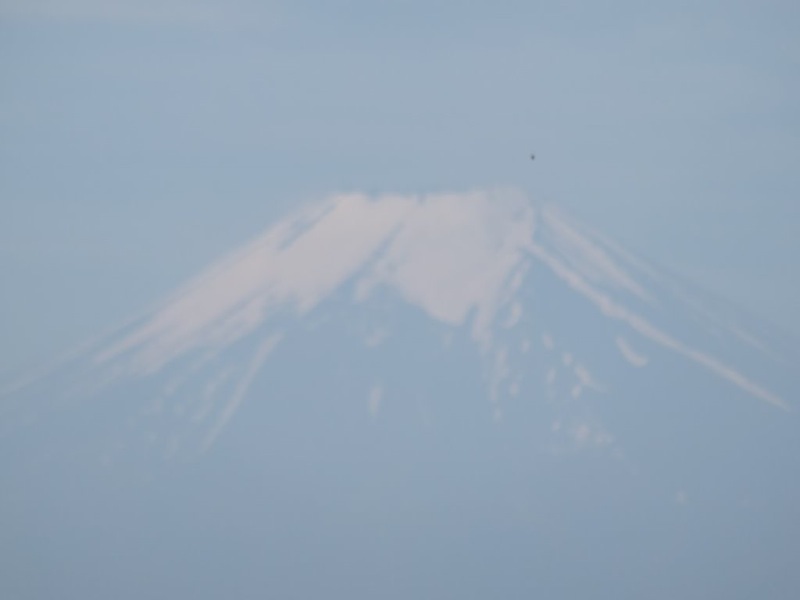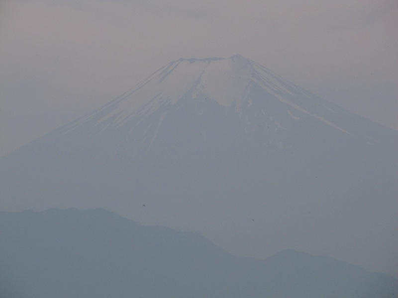 富士山が、また見えました。昔、仕事の都合で一眼レフのシステムをニコンからキヤノンへと総取っ替えしたときに、霞んだ富士山が予想以上にクッキリと写ったので驚いたことがありましたが、この写真も肉眼で見えていたのとほぼ同じ程度に撮れています。その頃、このカメラがあったら、まさに「夢のカメラ」でした。このクラスのカメラ(最近の高倍率コンパクトデジカメ)なら中古で1万円台で買えますから、ダメ元覚悟でぜひお試しを。